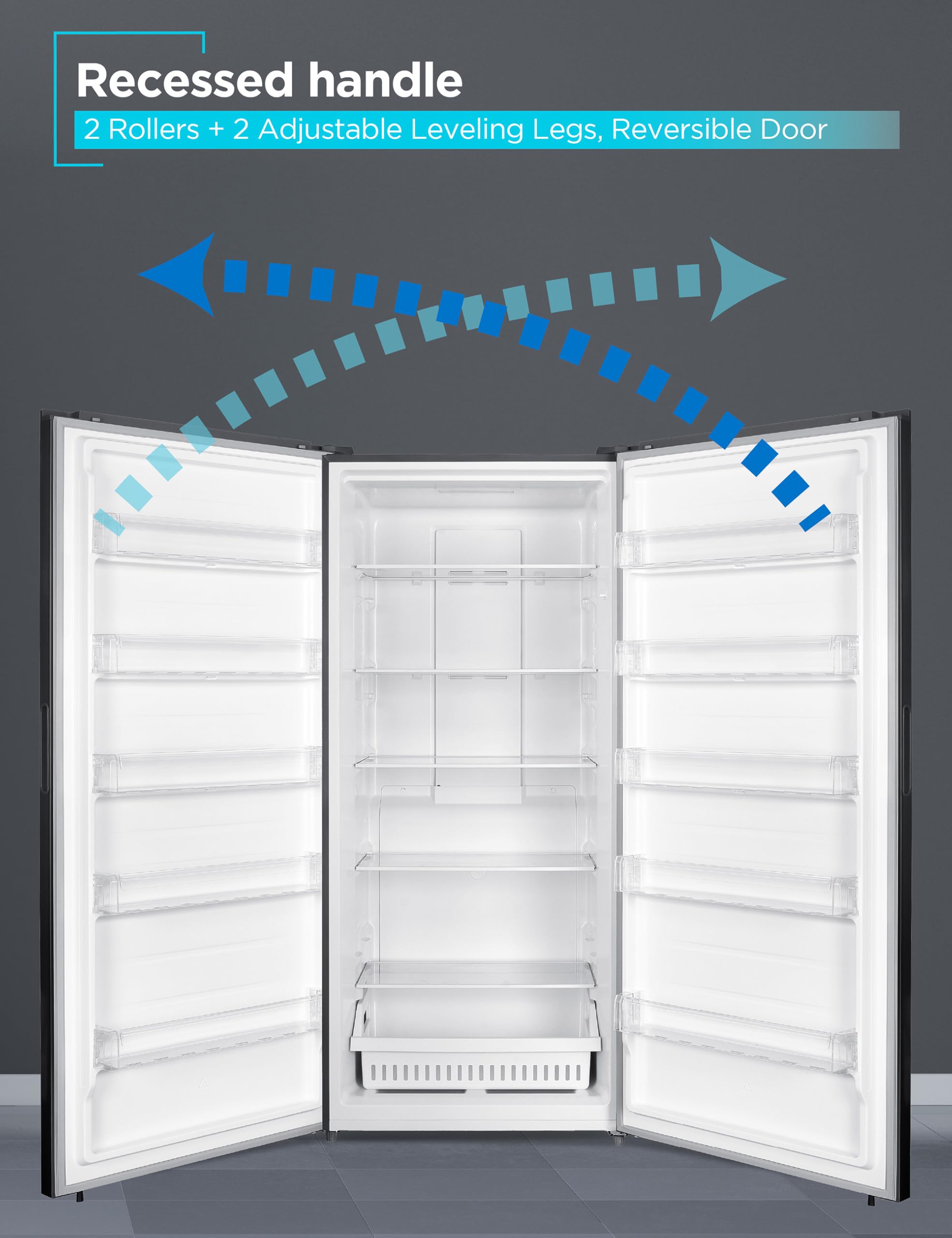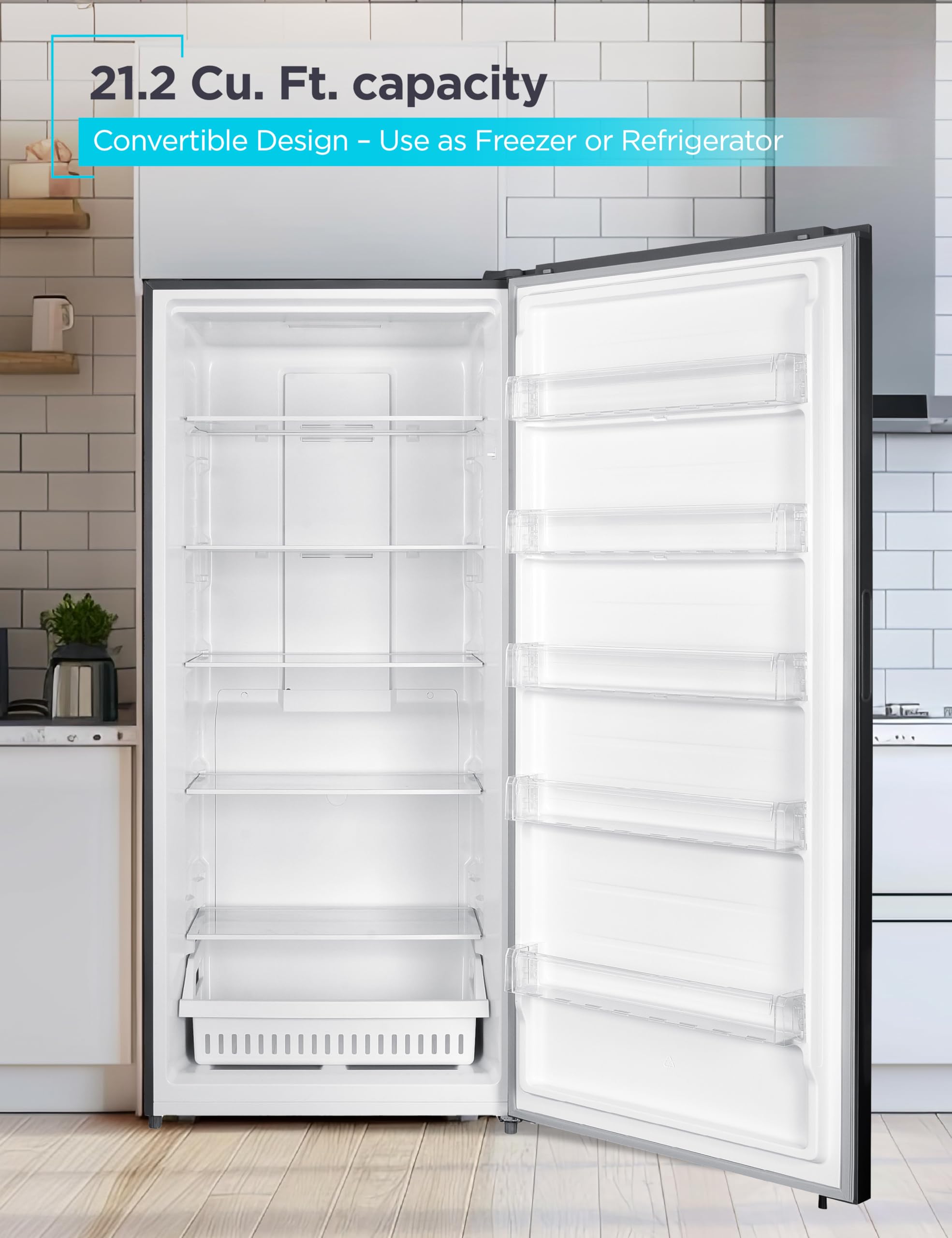 Convertible Design: This versatile 21.2 cu. ft. stand up freezer effortlessly transitions to a full size refrigerator, offering adaptable freezer storage and food storage solutions for various needs