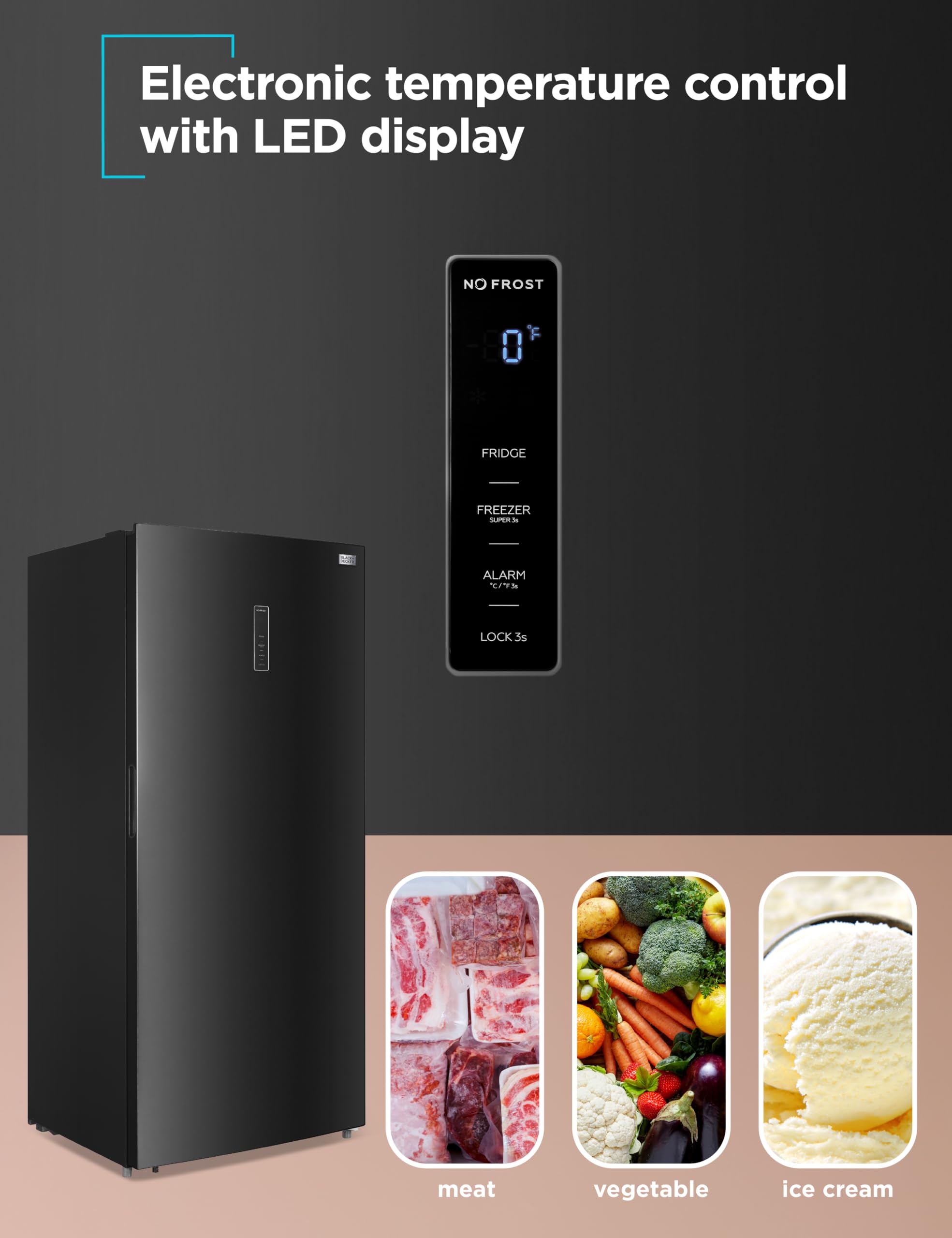 Electronic Control: Manage your standing freezer refrigerator settings with ease using the LED display, ensuring precise temperature control in both freezer and vertical refrigerator modes