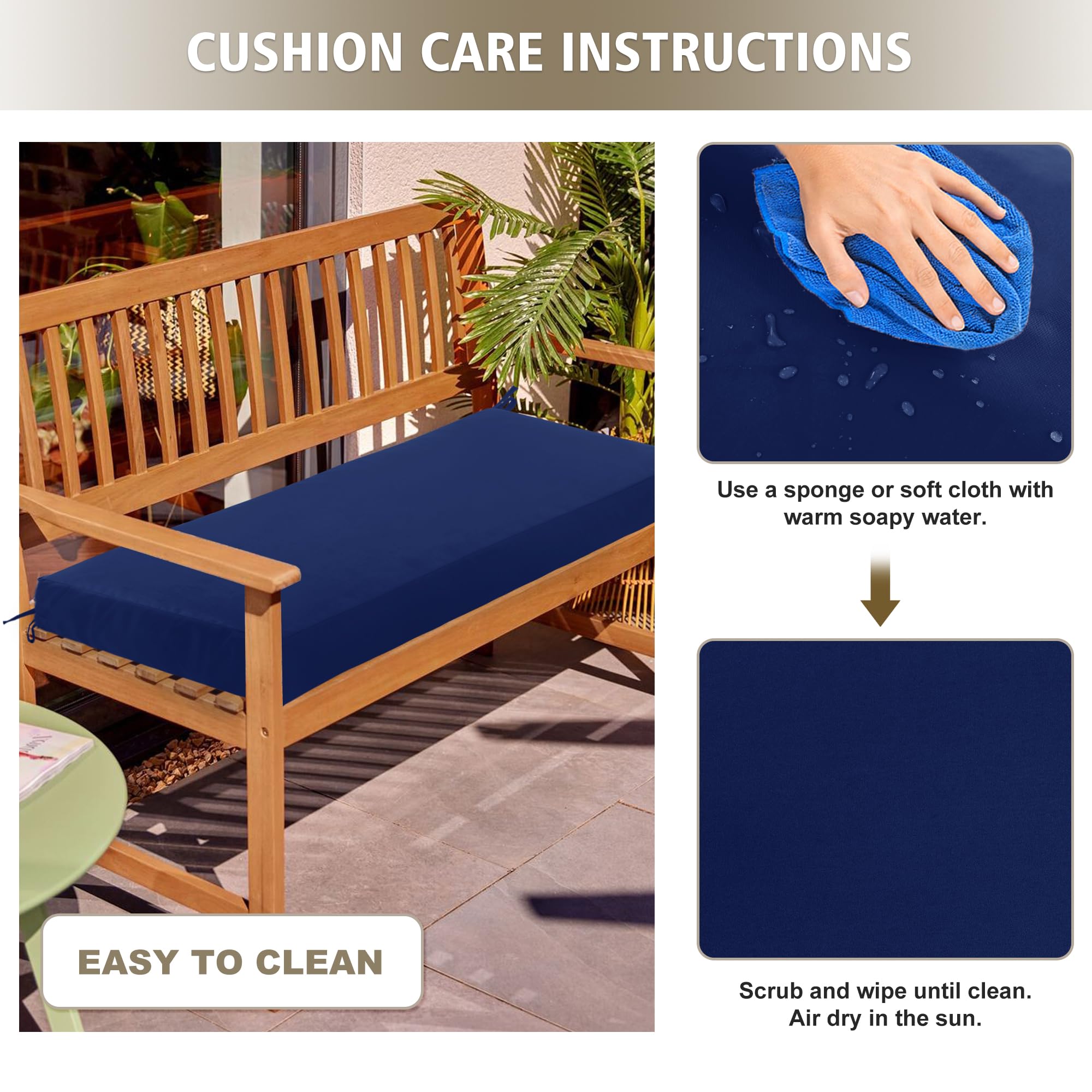 Enhance your seating experience with these premium outdoor bench cushions, designed for both comfort and durability. Available in multiple sizes (36"x14", 42"x18", 45"x18", 48"x18", 59"x18"), these cushions are perfect for a variety of spaces, including patios, entryway benches, window seats, and porch swings. Crafted with high-resilience foam, our cushions provide superior comfort by relieving pressure on your back and hips, ensuring a relaxing seating experience. The waterproof, fade-resistant fabric makes them ideal for outdoor environments, withstanding moisture and UV rays without losing their vibrant color over time. Designed for a secure fit, each cushion comes equipped with adjustable tie straps to keep them in place, preventing slipping or shifting, even on breezy days. Whether you’re using them outdoors or indoors, they stay securely attached to your furniture for a comfortable and stable seating experience. Cleaning is made easy with the removable, machine-washable covers. Simply unzip and toss them in the washing machine to maintain their fresh look. These cushions arrive vacuum-sealed for compact shipping and will fully expand within 24-48 hours of unpacking. With seven beautiful color options—Black, Dark Grey, Navy, Sage Green, Teal, Cream, and Burgundy—these cushions are a stylish addition to any outdoor or indoor space, providing both comfort and aesthetic appeal to your furniture.