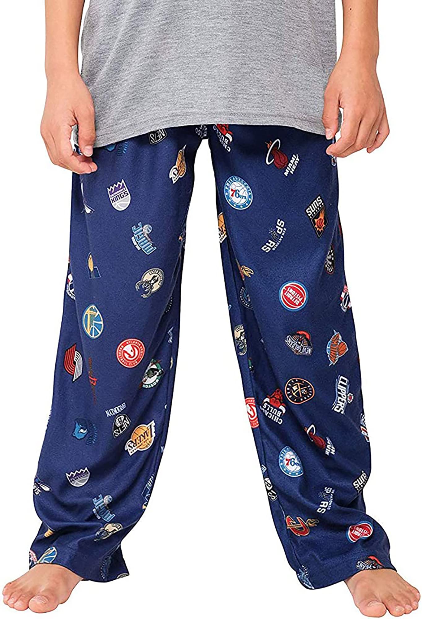 TEAM PRIDE: kids can show their NBA team pride from top to bottom with this set. The bottoms have an all-over print with the team's primary and secondary logos. The top has one large screen print of the primary logo across the front.
