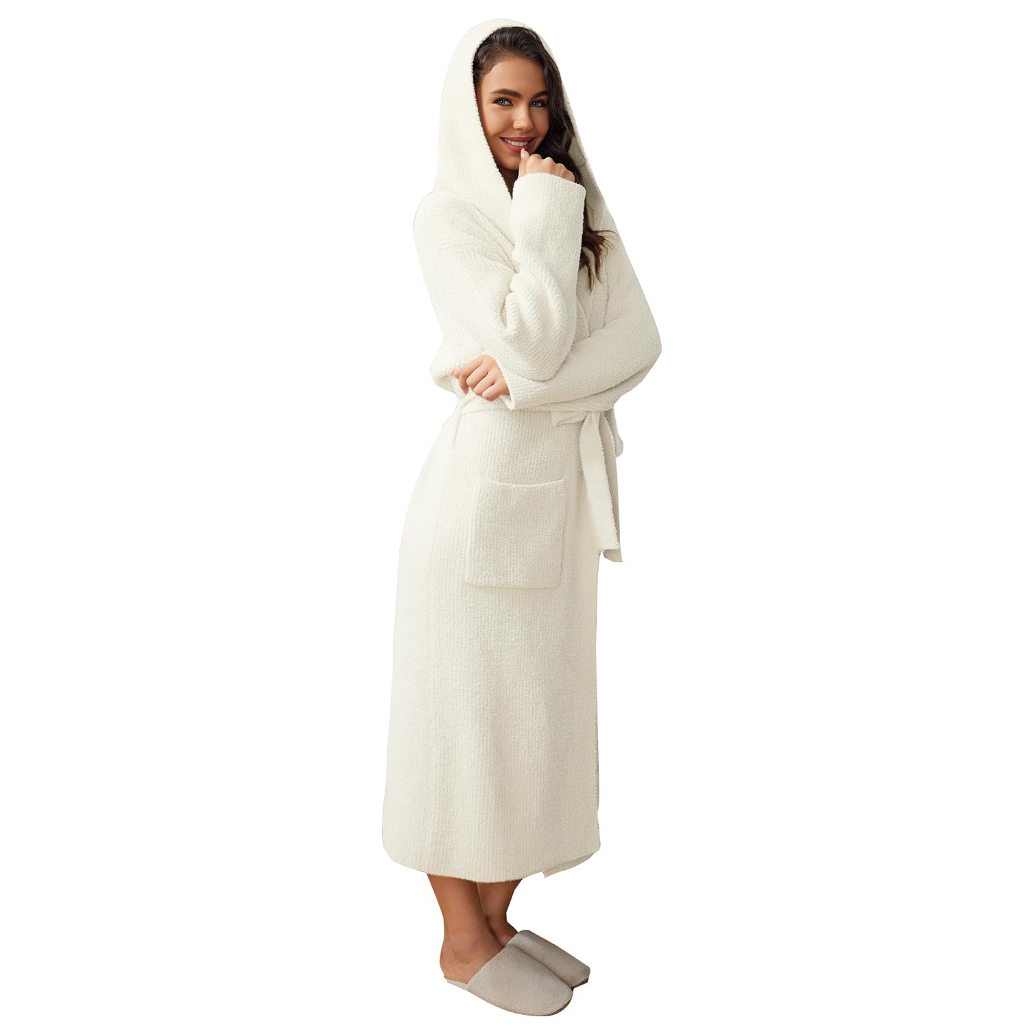 STYLISH & FUNCTIONAL - This women's bathrobe features a shawl collar and a hooded design, complemented by luxurious details. The ultra-soft texture adds a touch of comfort and elegance, subtly accentuating your body figure. Practical pockets keep essentials like smartphones within easy reach!