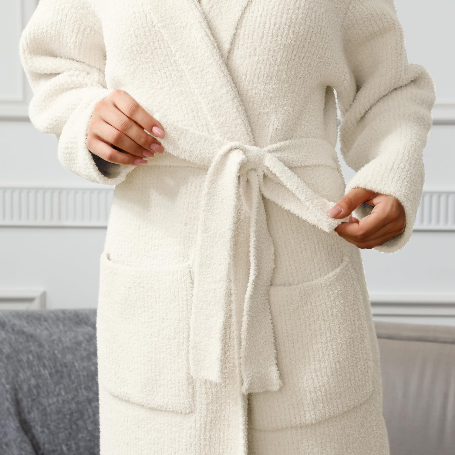 Description MH MYLUNE HOME Ultra Soft Robe with Pockets, Soft Spa Bathrobe Loungewear Calf-Length, Plush Robe for Women Fuzzy, Wrap Robe, Robe with Pockets for Women Soft and Plush