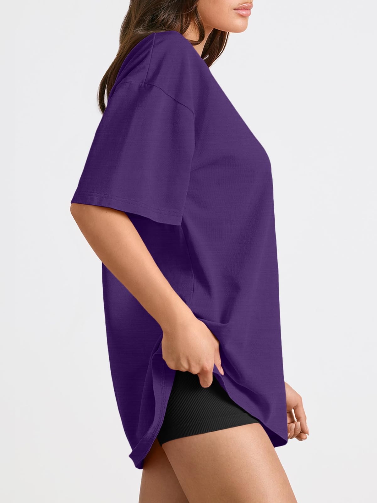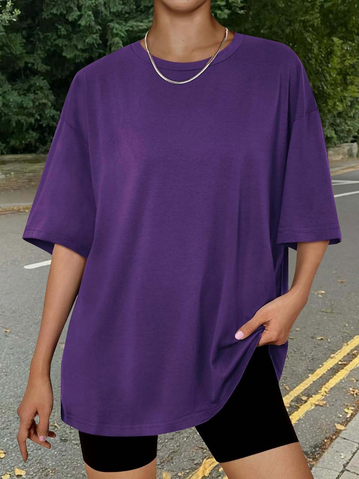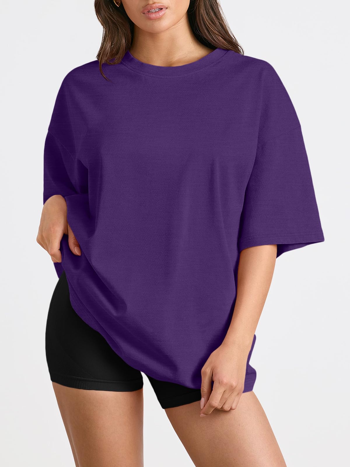 Design:Short sleeve shirts,round neck,loose fit tops,oversized casual blouse,solid color never out of style,easy to match with every style.