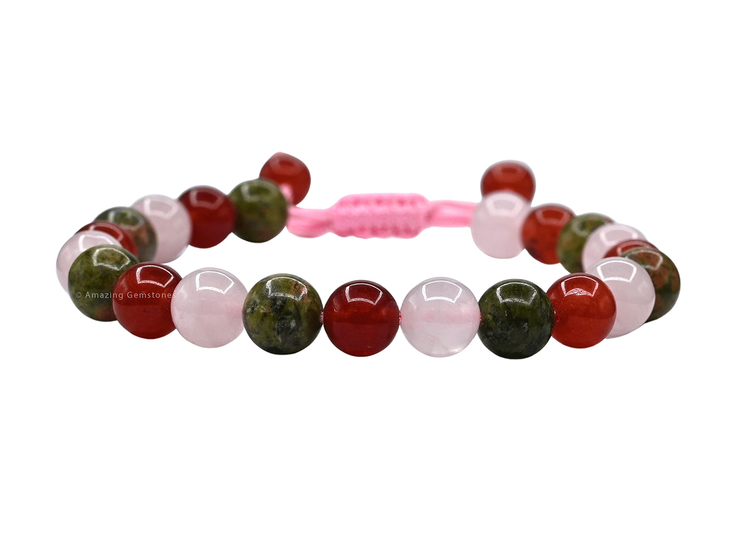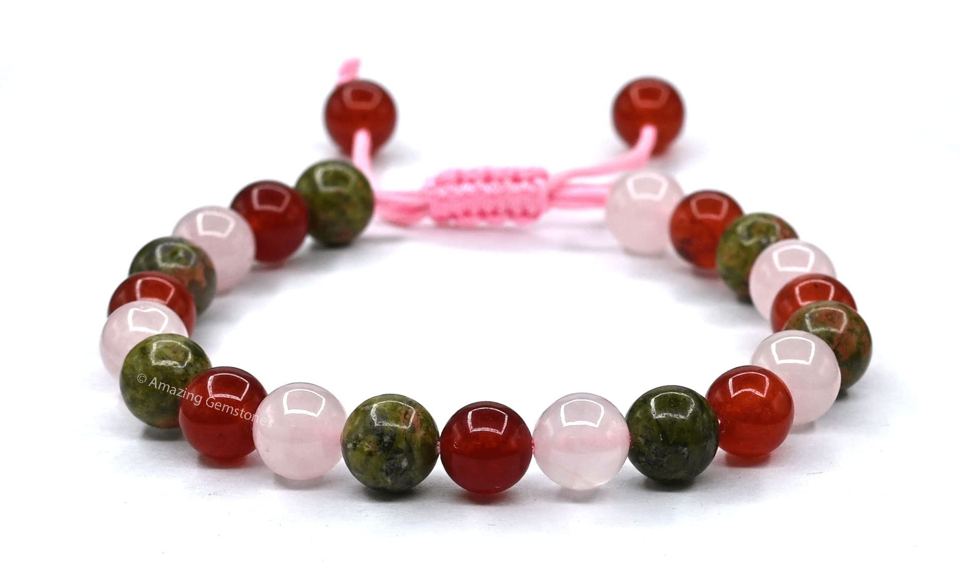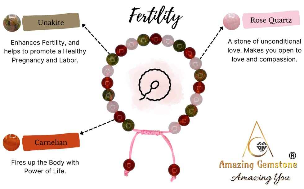 Bracelet for Fertility contains real crystal beads Carnelian, Unakite and Rose Quartz. Carnelian for Encourages, Unakite for Enhance Fertility & Rose Quartz for Love Compassion Pulseras Para Hombres Mujer Stocking Stuffers.