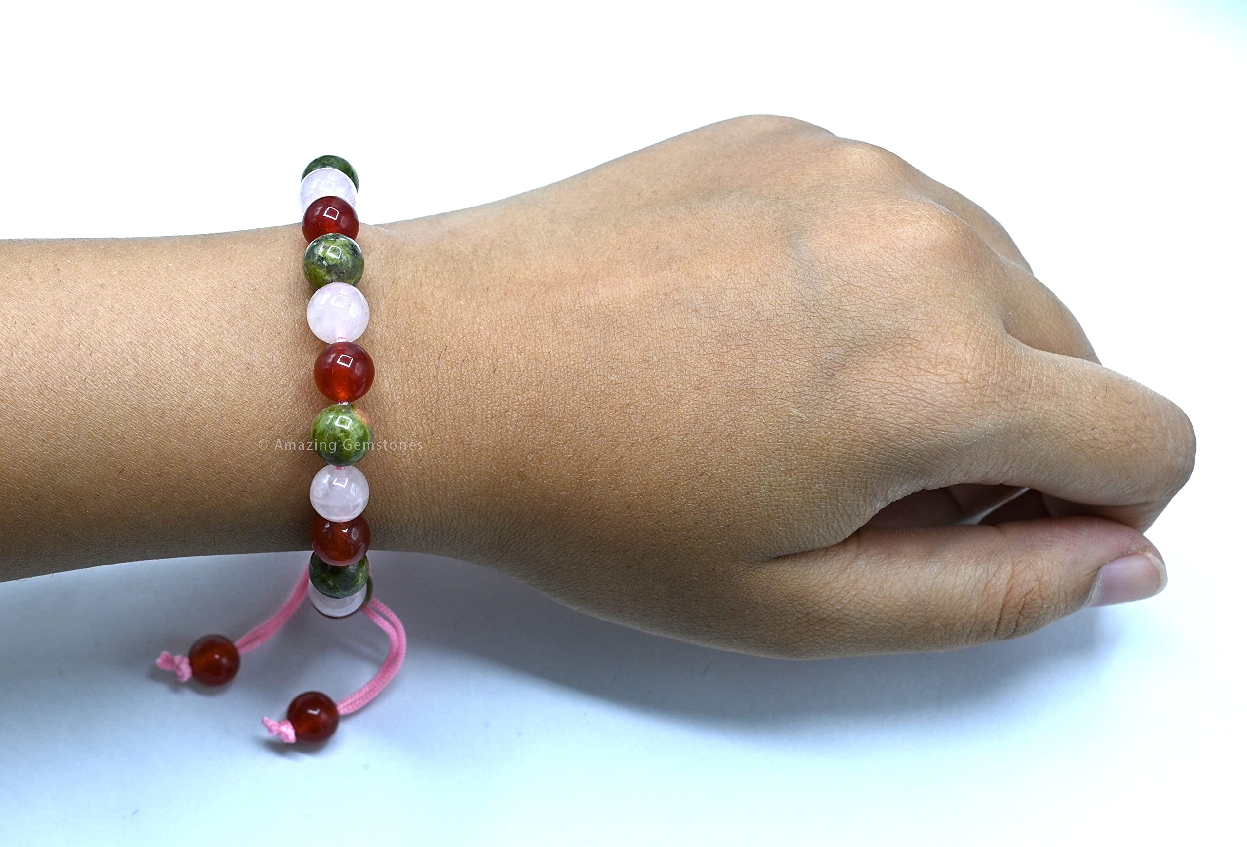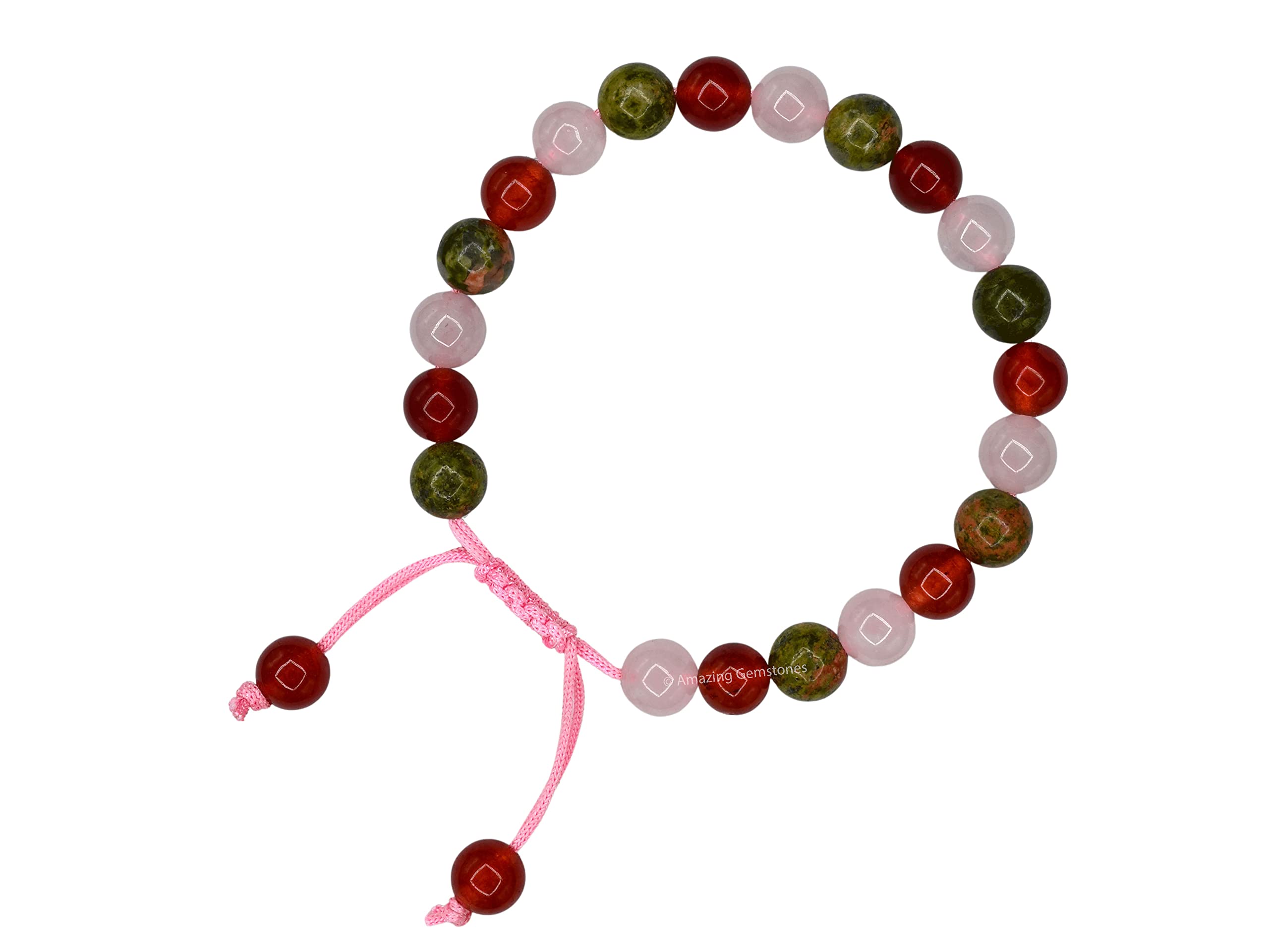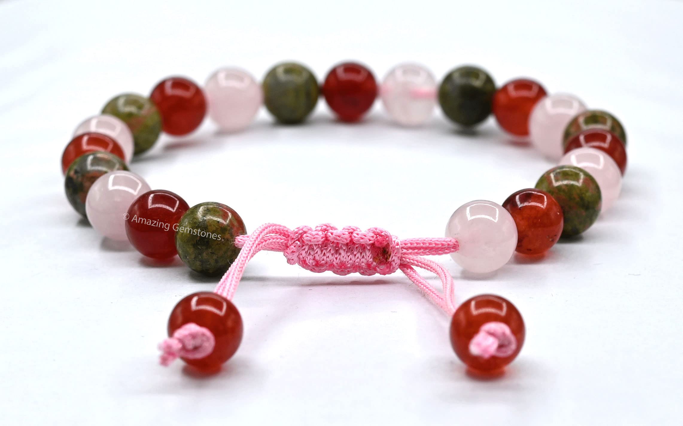 Bracelet for Fertility contains real crystal beads Carnelian, Unakite and Rose Quartz. Carnelian for Encourages, Unakite for Enhance Fertility & Rose Quartz for Love Compassion Pulseras Para Hombres Mujer Stocking Stuffers.