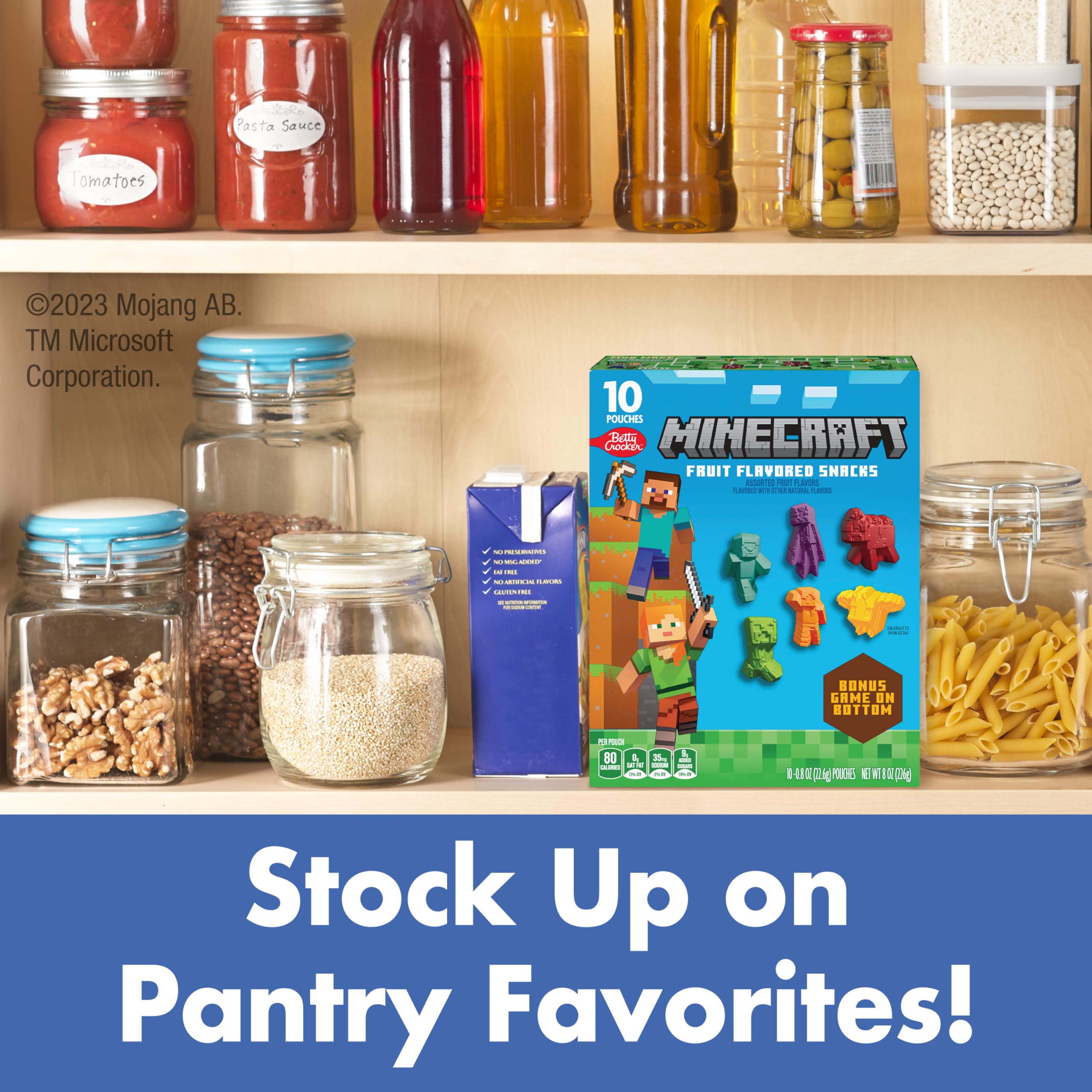CONTAINS: One 8 oz box of Betty Crocker Minecraft Fruit Flavored Kids Snacks; 10 pouches