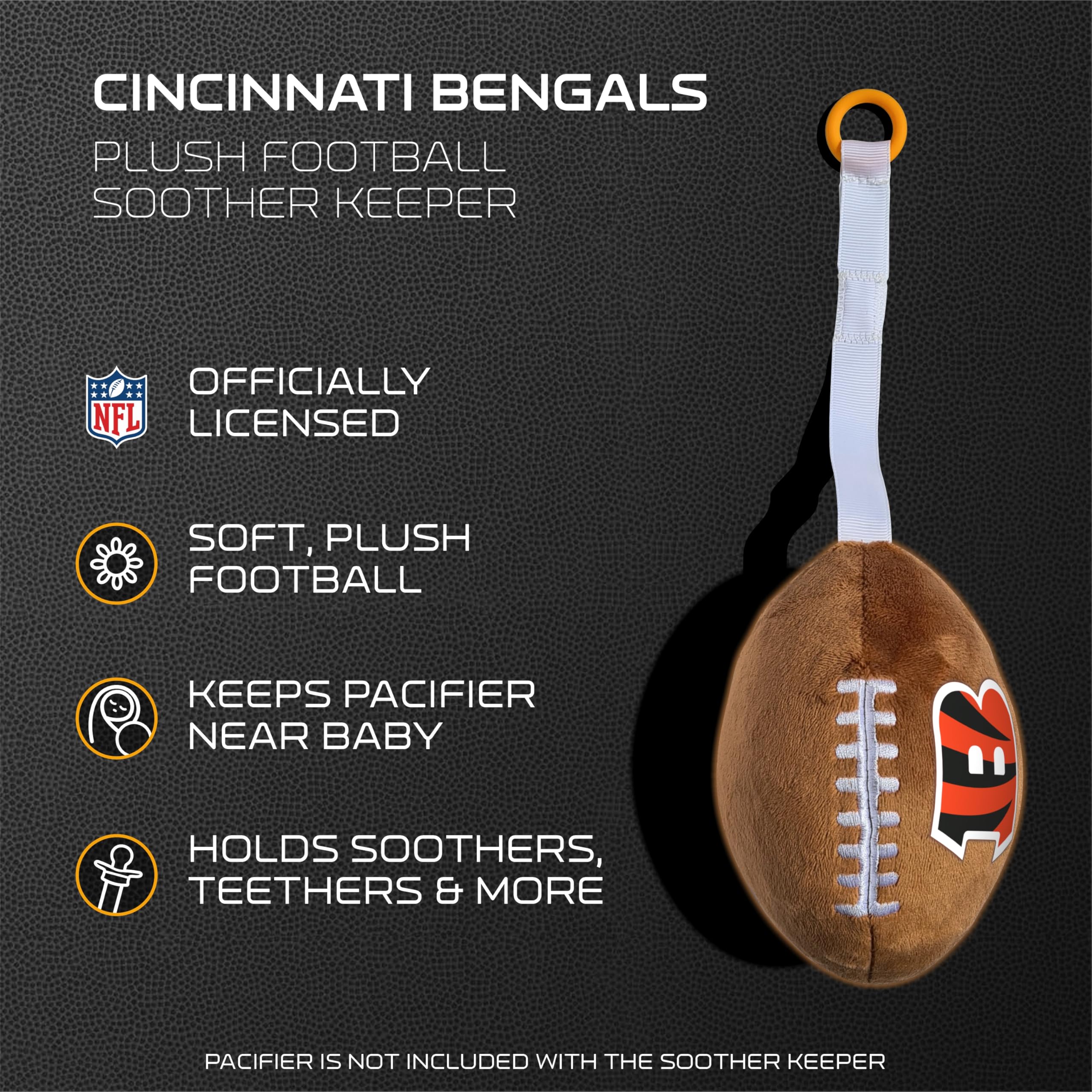 Who Dey! Official NFL Licensed product – Play like the pros with this soft and safe plush football pacifier holder – perfect baby gift for young fans to show team pride with comfort, style, and spirit! All 32 NFL teams are available.