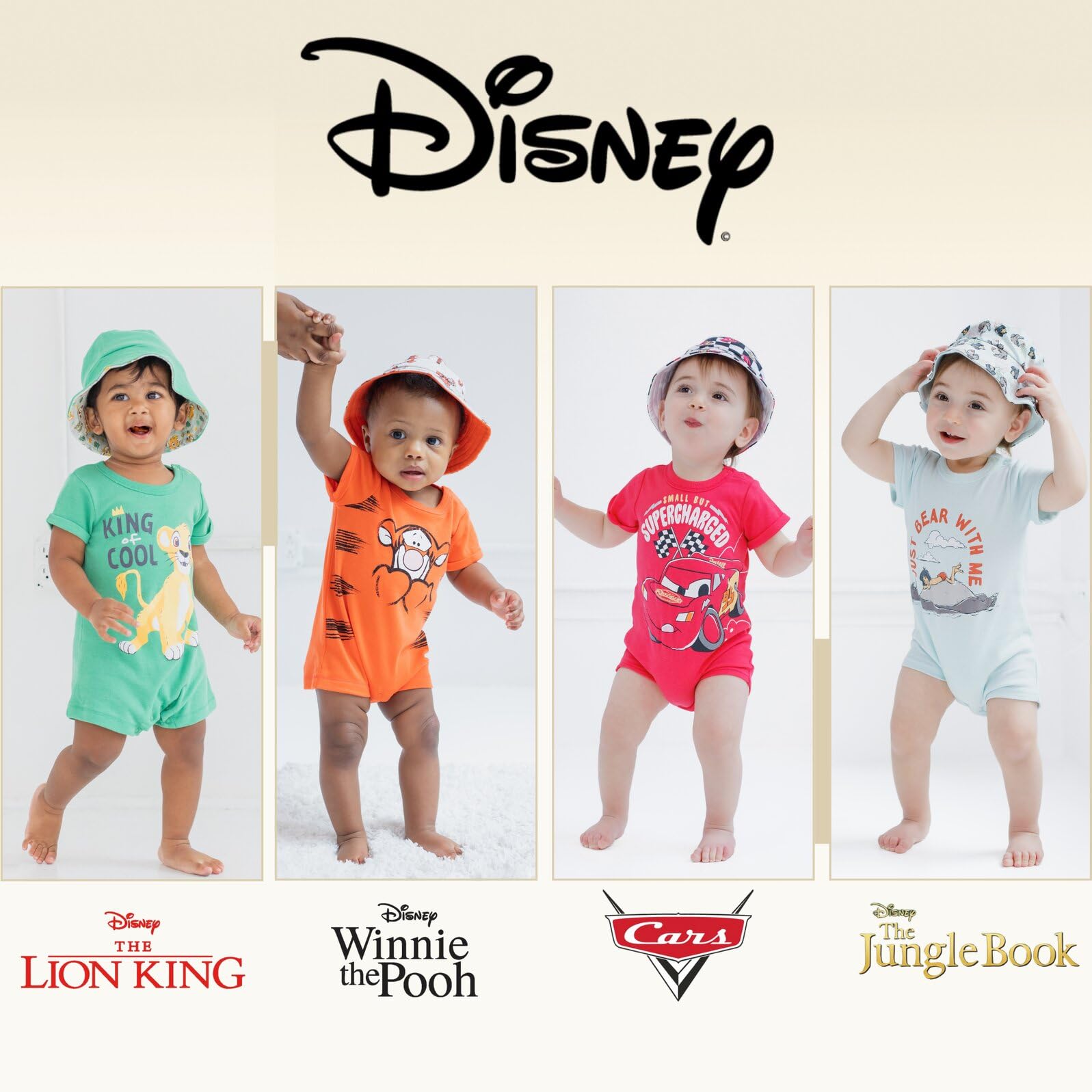 Description Dress your little one in this adorable outfit and get ready for a day filled with Disney magic! This soft and comfy one-piece romper features an easy-to-dress snap design, a stylish matching sunhat, and vibrant artwork of your favorite iconic Disney characters. Watch your child go on adventures with characters like Winnie the Pooh, Tigger, Mickey Mouse, Jack Skellington from Nightmare Before Christmas, Stitch from Lilo and Stitch, and Simba, Timon, and Pumbaa from The Lion King! This fashionable summer essential is the perfect outfit for all-day fun and play!
