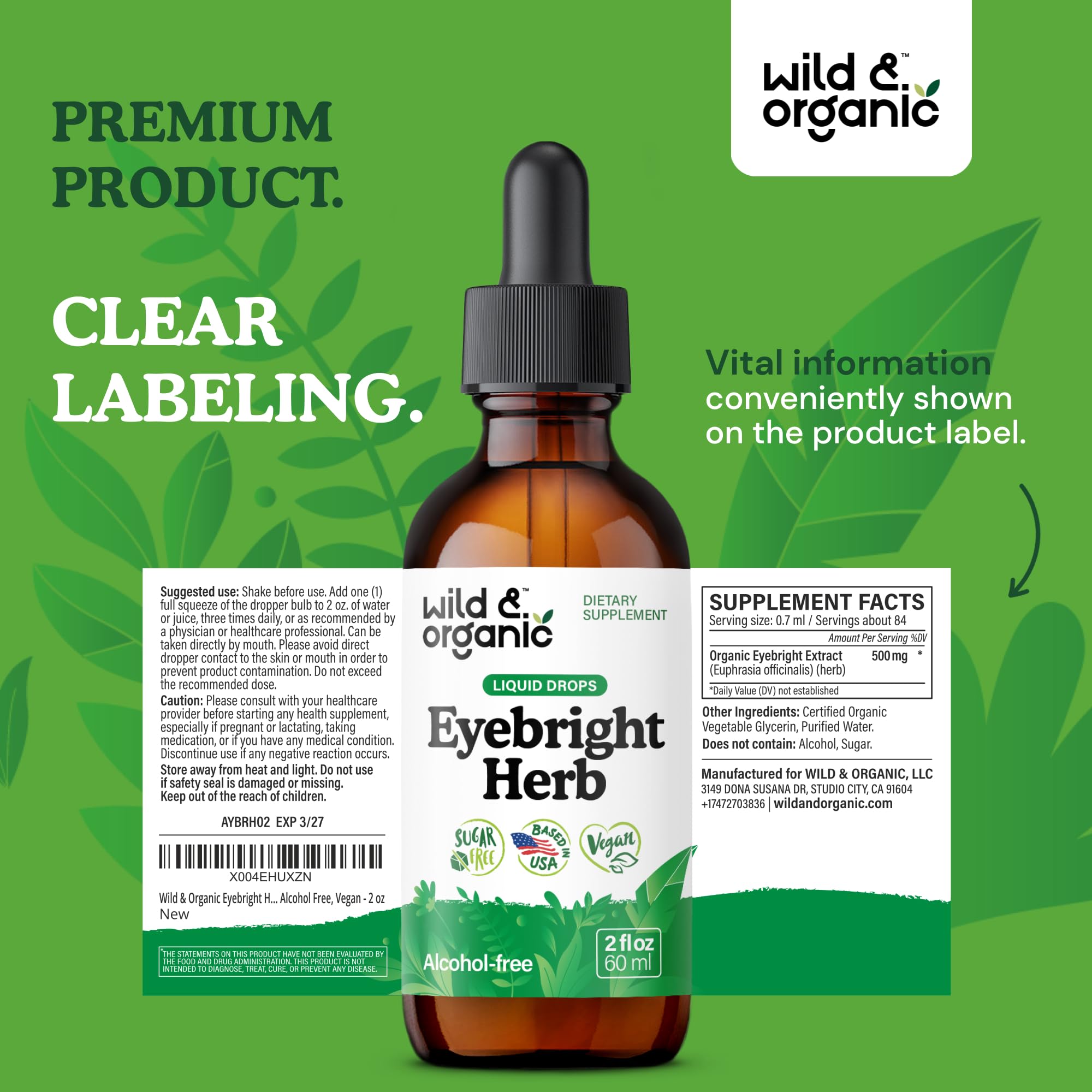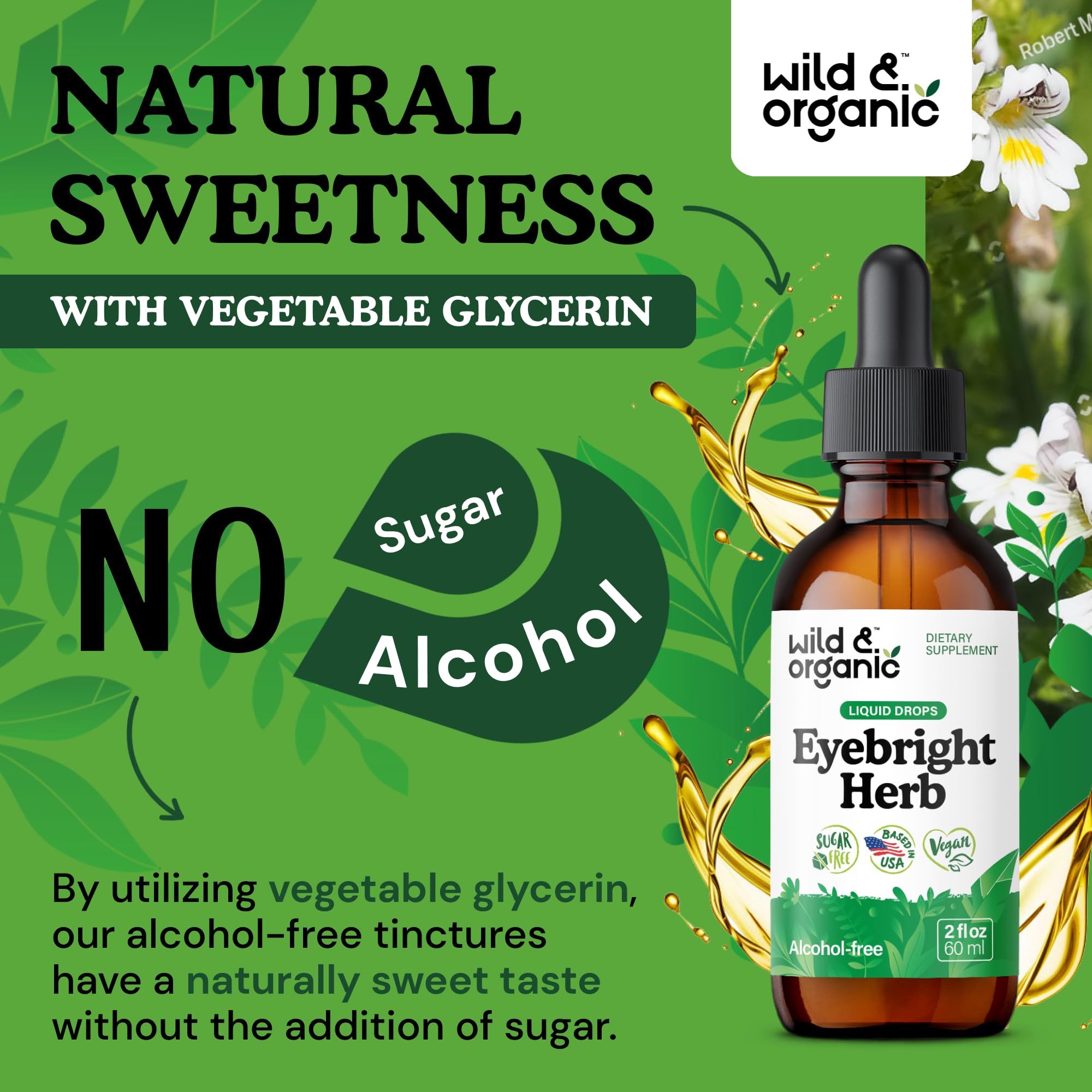 Alcohol-Free: Wild & Organic tincture with eye bright herbs is vegetable glycerin-based, providing an alcohol-free tincture that is easy on digestion.