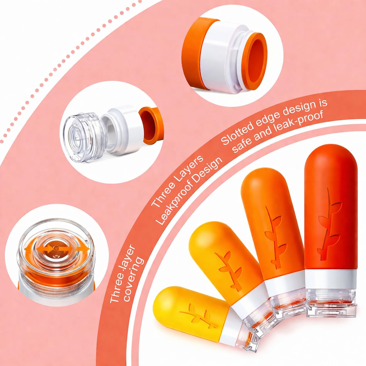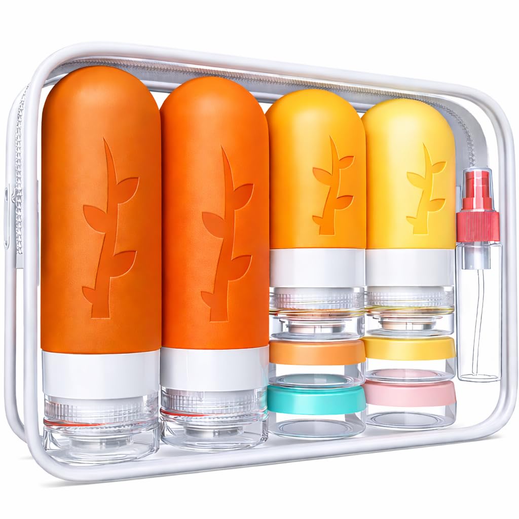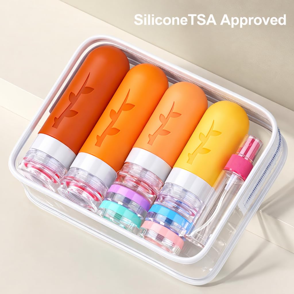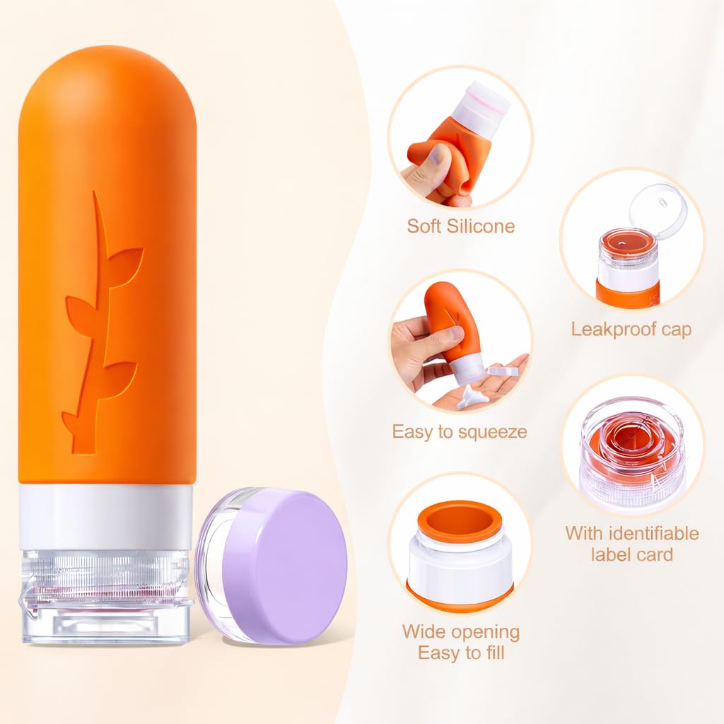 Tsa Approved Leak Proof Travel Toiletries Bottles: The silicone bottles are designed with 3-layer leak-proof with a sturdy flip-top lid and a drip-free valve to protect your bottle from spills, leaks or drips during transport, prevent your expensive cosmetics from leaking during travel, with our unique leak-proof design