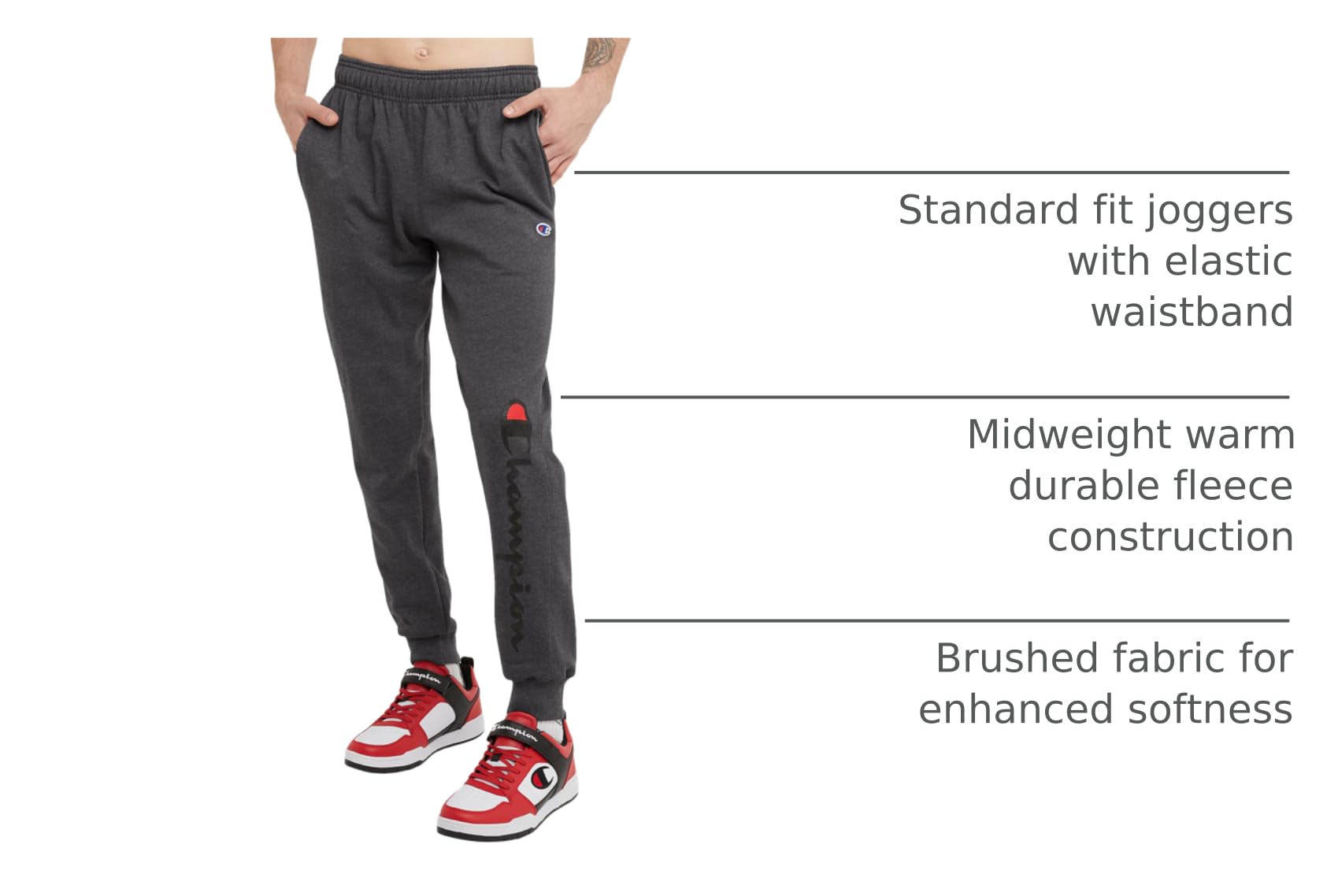 THE FIT - Standard-fit men's joggers with an elastic waistband, adjustable drawcord, and 31" inseam.
