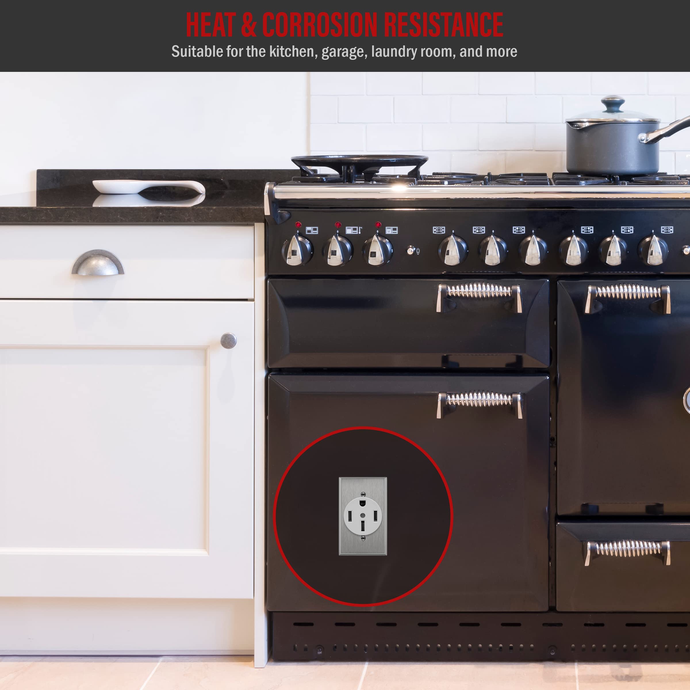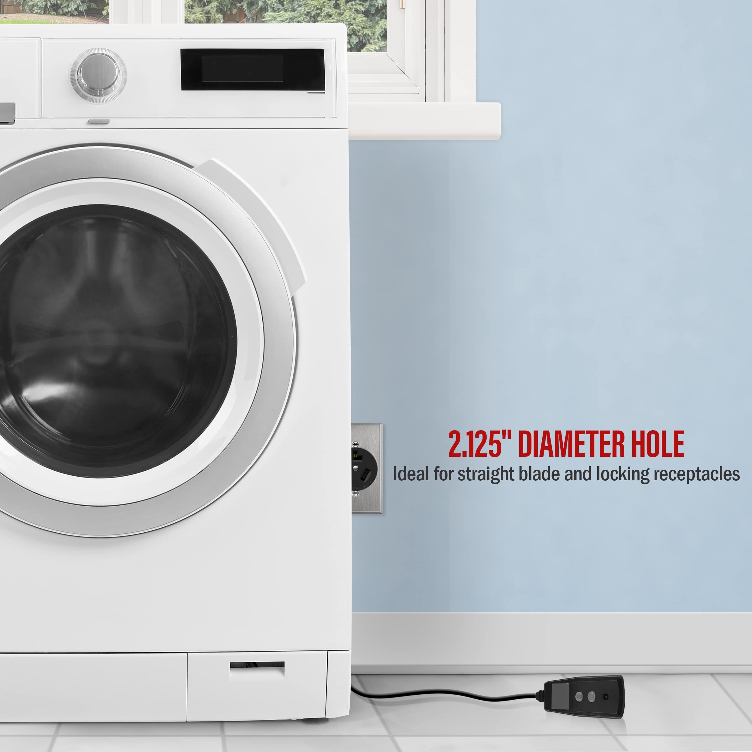 Designed to cover straight blade and locking receptacles for electrical ranges and dryers. Enerlites models 66300, 66500, 67300 and 67500