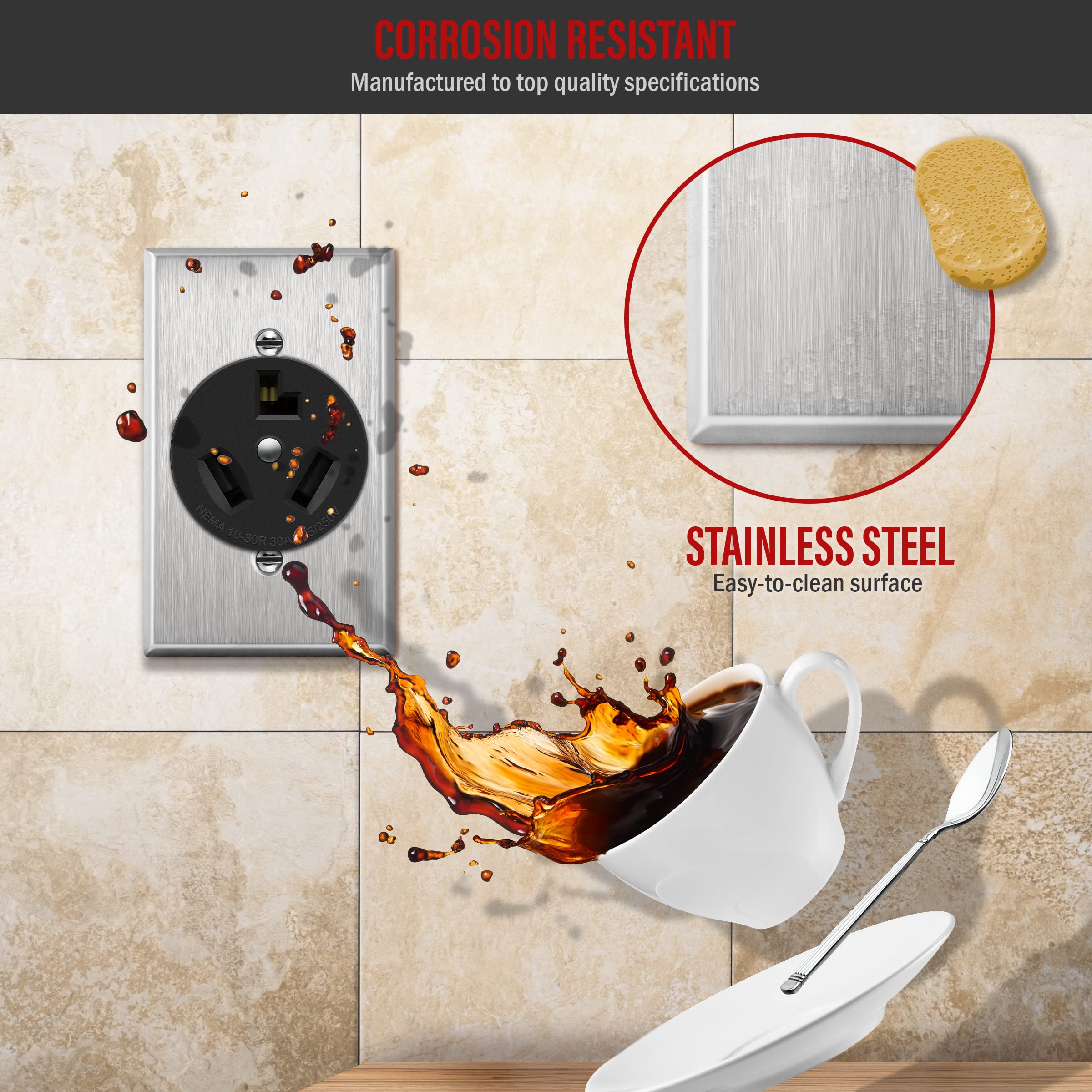 The contemporary design enhances installation appearance. The smooth finish and contoured edges of these stainless-steel wall plate provide safe and easy cleaning.