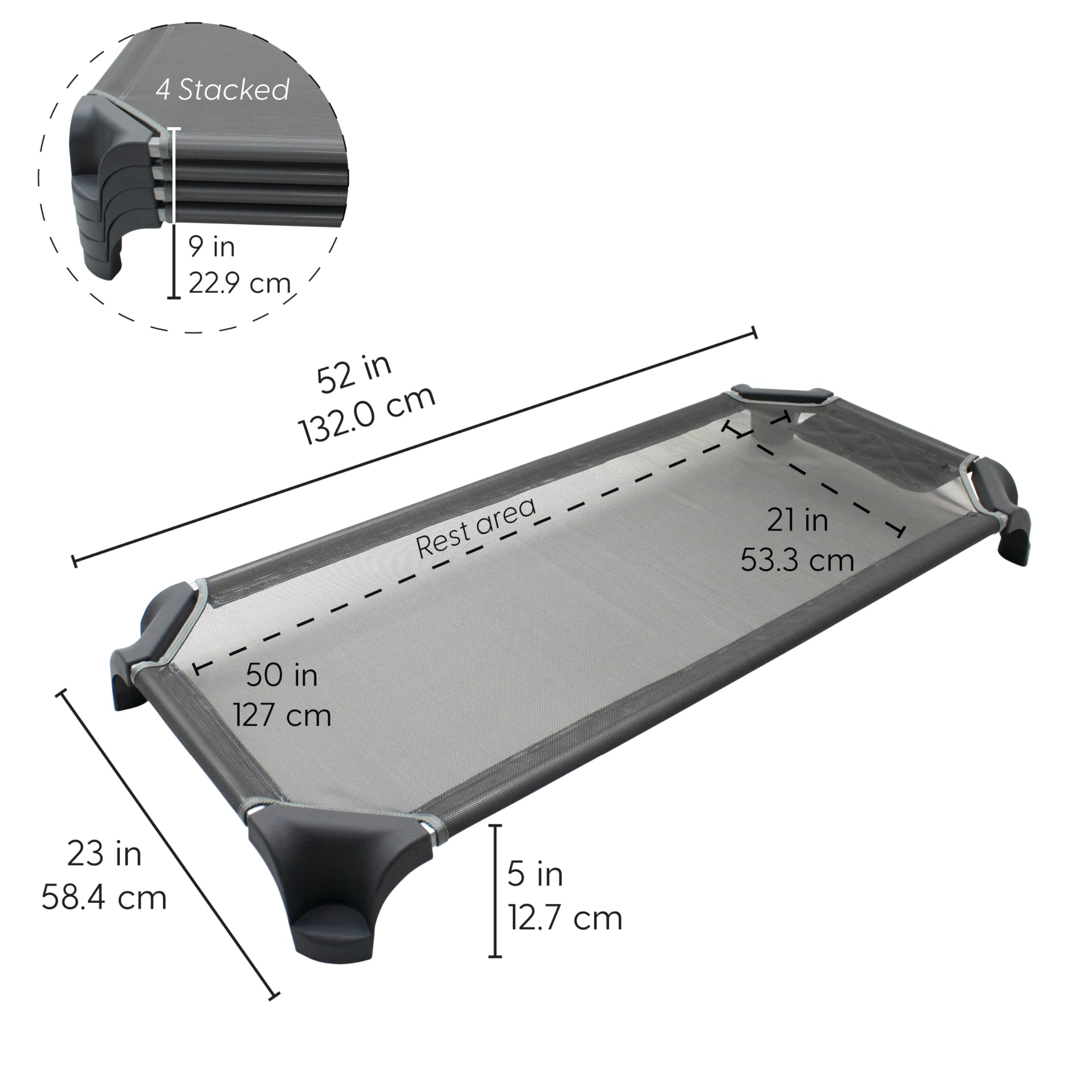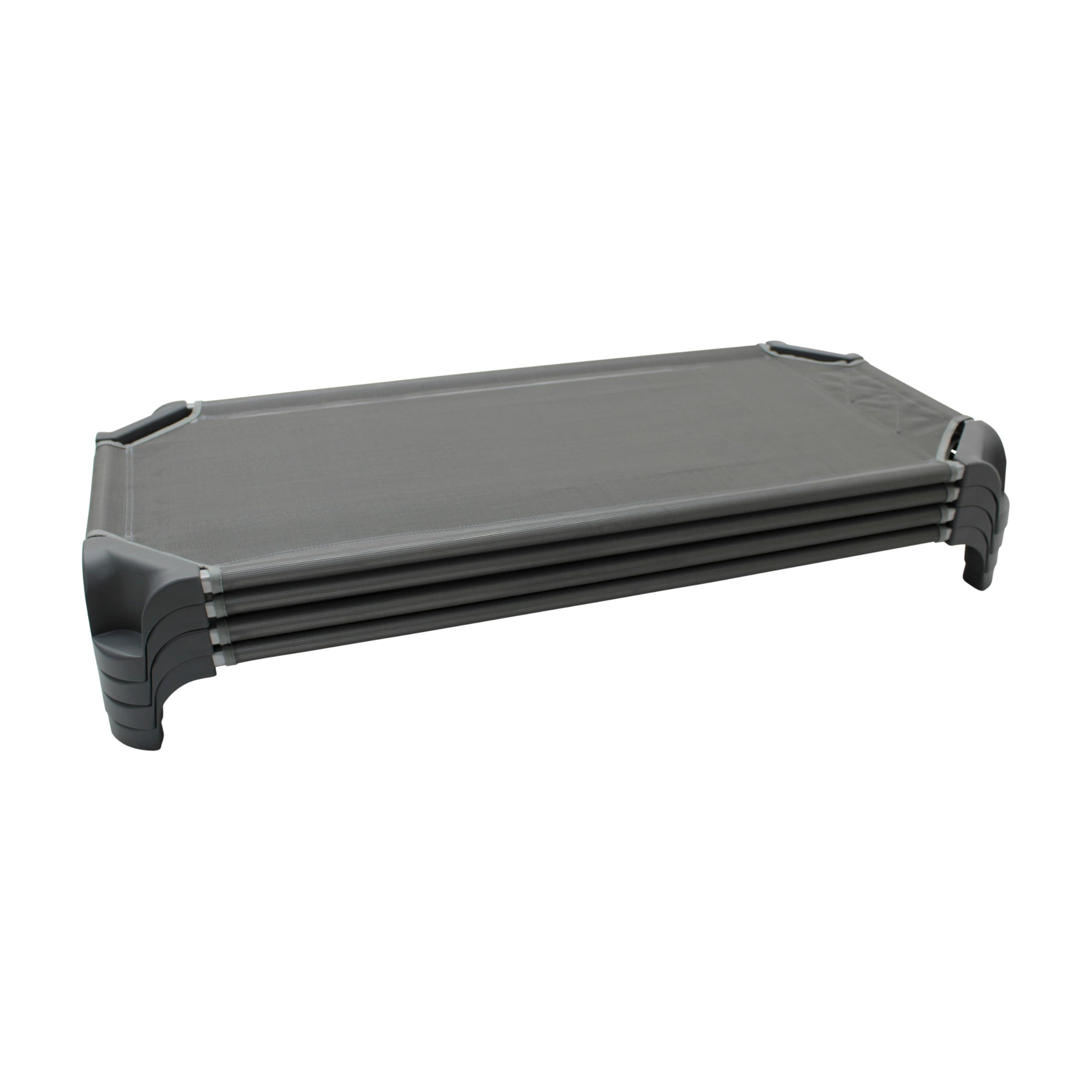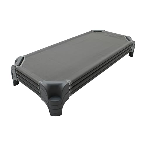 Naps are essential for growing kids and their developing minds during early childhood. FDPs Stackable Childrens Cots provide little ones with a secure place to rest up during naptime at daycare, preschool or even at home. Stackable cots boast a low profile for even the most active nappers, plus sufficient space to add personal comfort items or blankets. Cots are convenient to store under a bed or in a closet and can aid in a successful naptime routine at daycare or a restful and sleep-over at grandma and grandpa's. Designed for everyday use with breathable PVC coated mesh fabric that is easy to wipe clean when accidents happen. Mesh is detachable and secured with heavy-duty hook-and-loop fasteners so little ones can't easily detach from the frame. The waterfall-style cot corners nest together for space-saving efficiency and can be stacked up to 12 high. 18-gauge steel frame supports up to 150 lbs. Cots comply with state naptime standards and regulations. Cots arrive fully assembled and ready to use right out of the box. Designed in San Diego and made in Mexico with globally sourced materials.