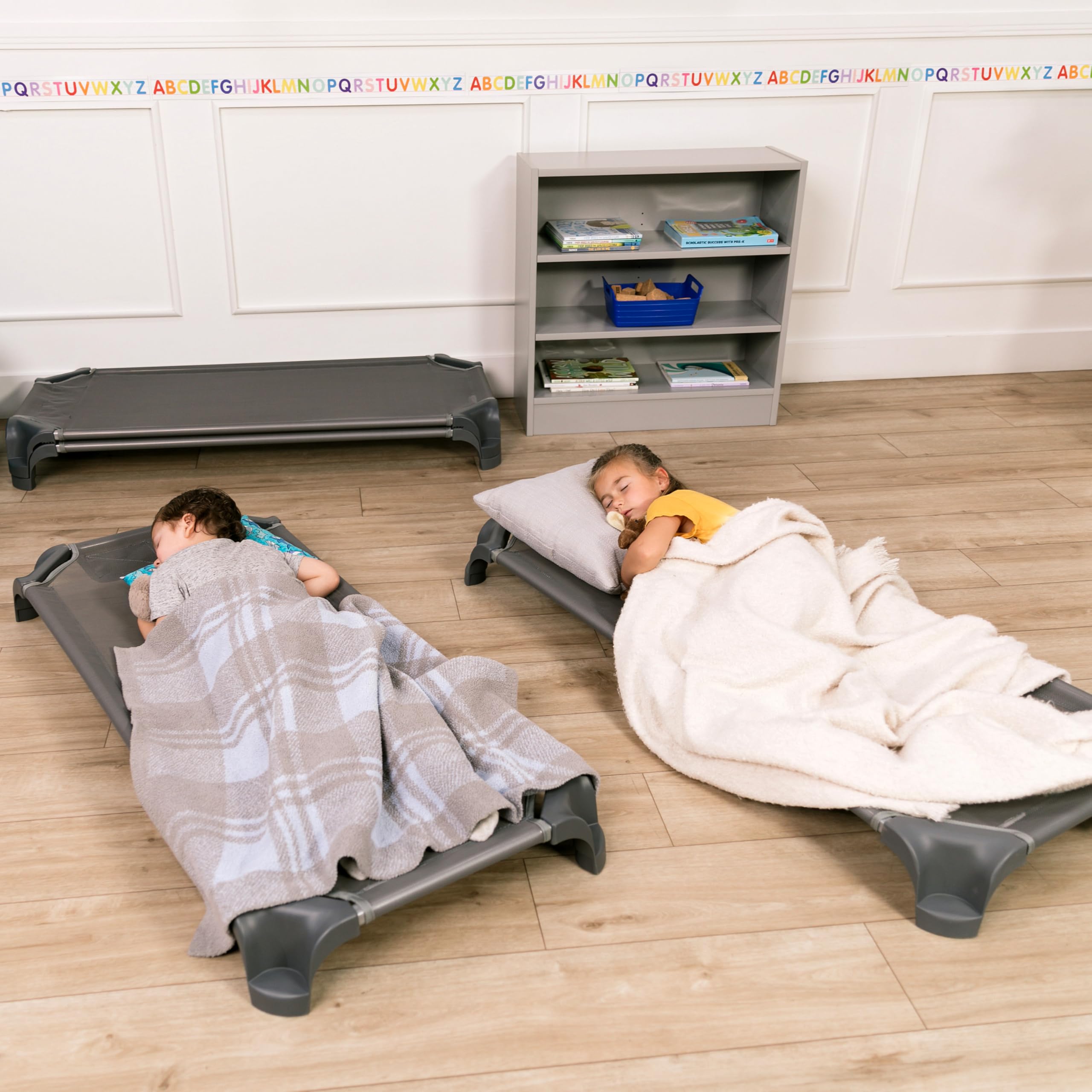 STANDARD COT: the low-profile individual standard cot is 52" long and 5" off the floor; just the right size for TK and Pre-K classrooms
