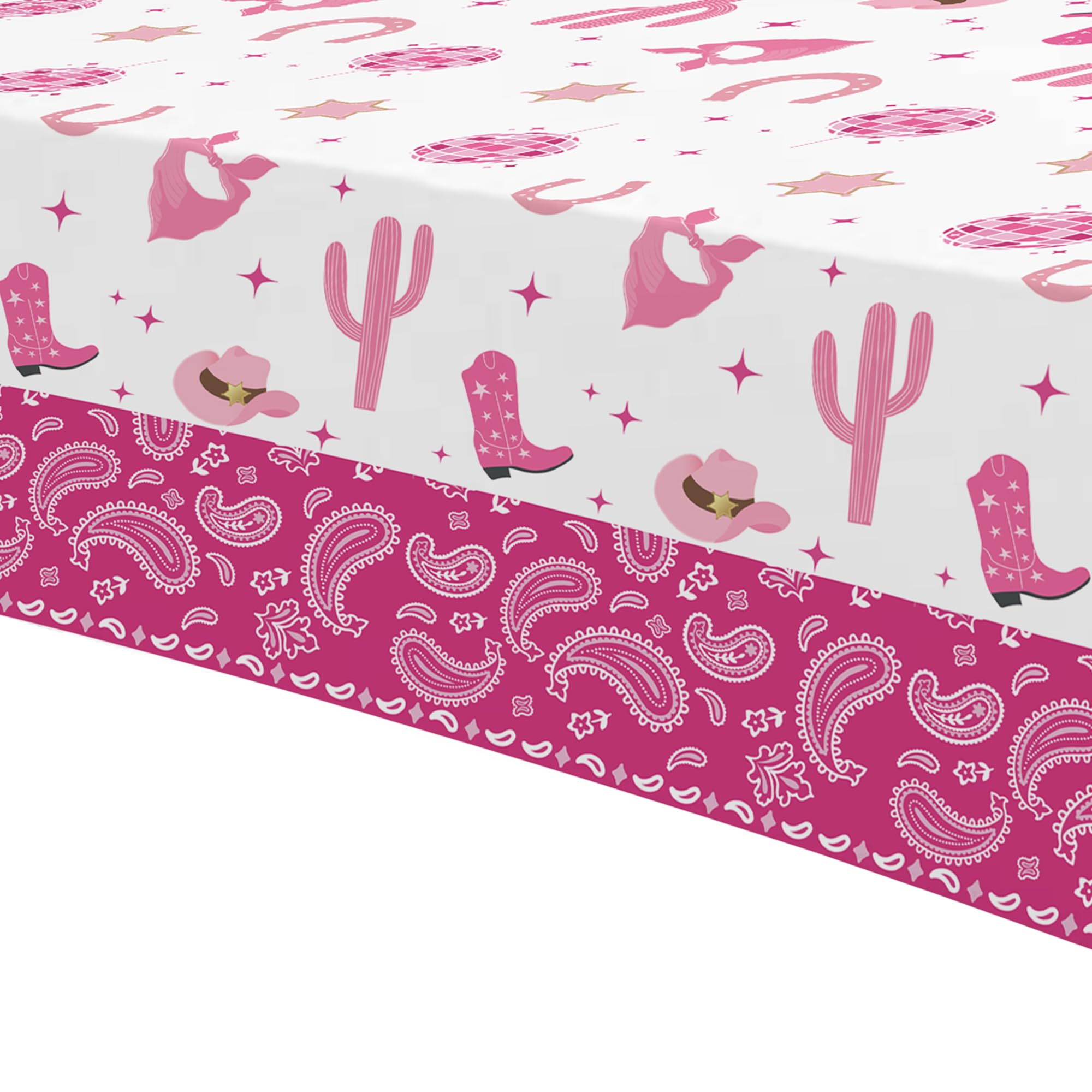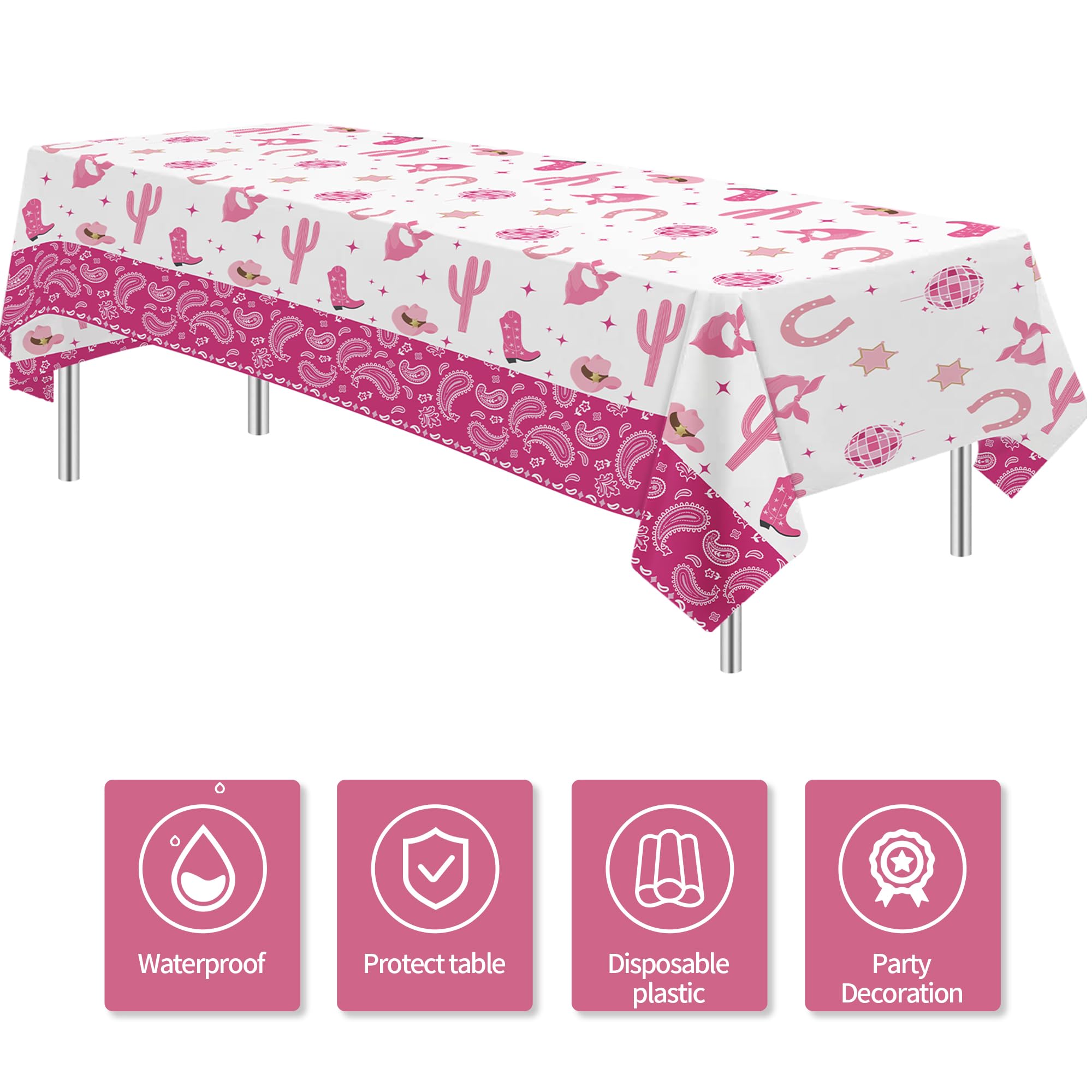 【Package】This set includes 4 pieces of pink disco cowgirl party supplies tablecloths that will meet your party decoration needs. Each tablecloth measures 108 x 54 inches and is designed to fit standard 8-foot-long tables
