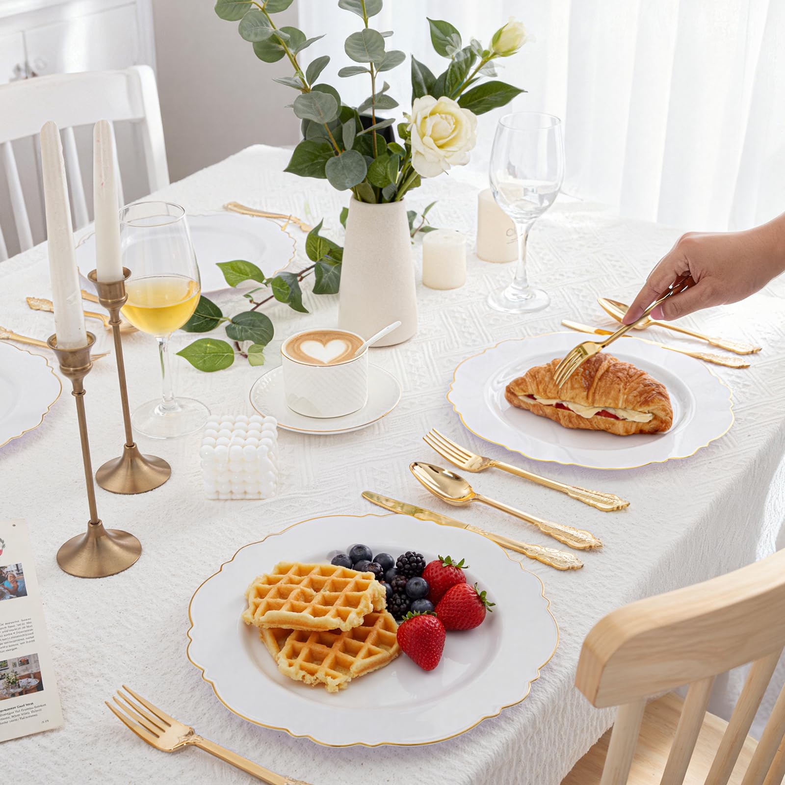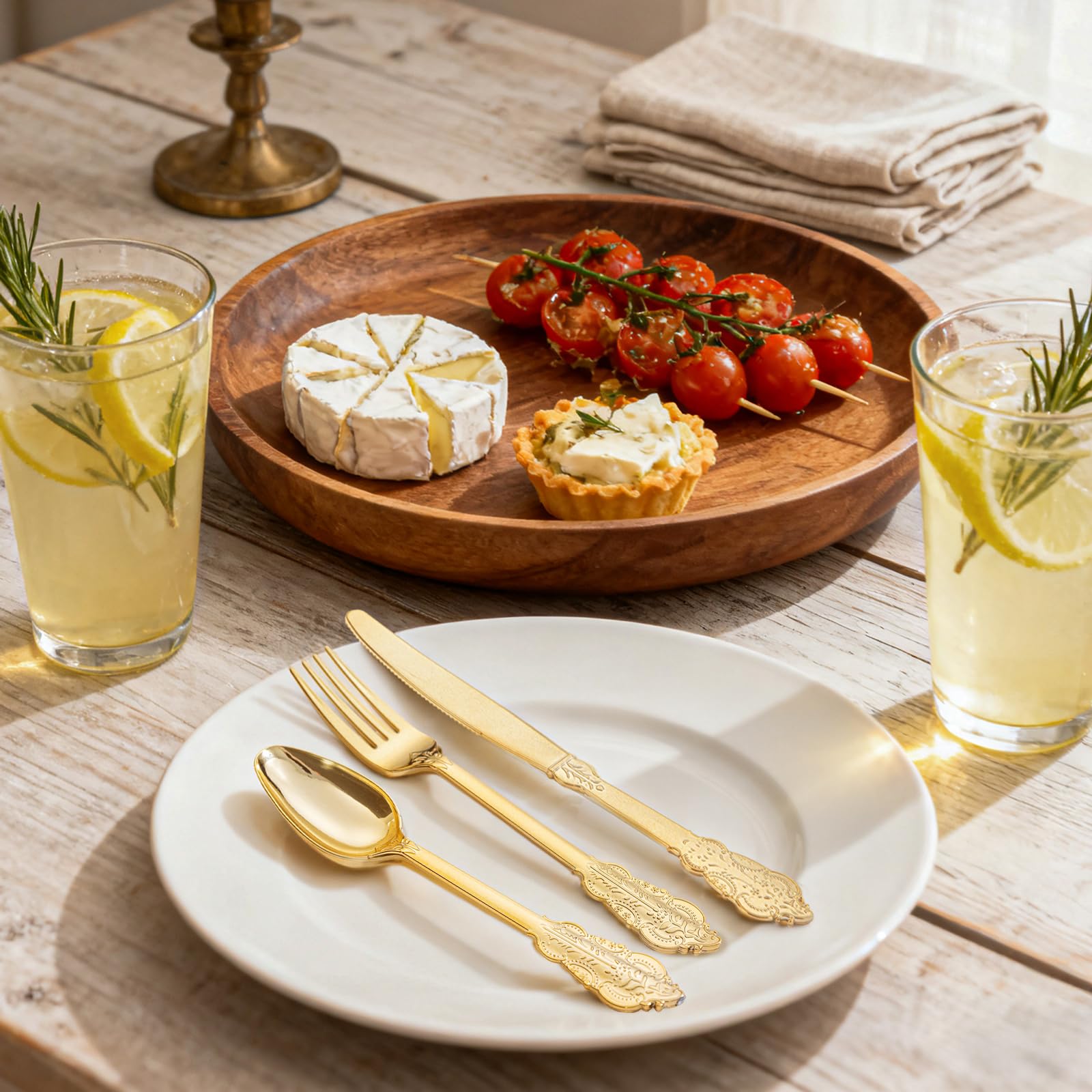 PREMIUM QUALITY: 100% food grade, non-toxic, BPA-free plastic! Those gold plastic silverware are safe you and your guests. Solid, durable, heavy duty cutlery ensure won't scratch or break easily.