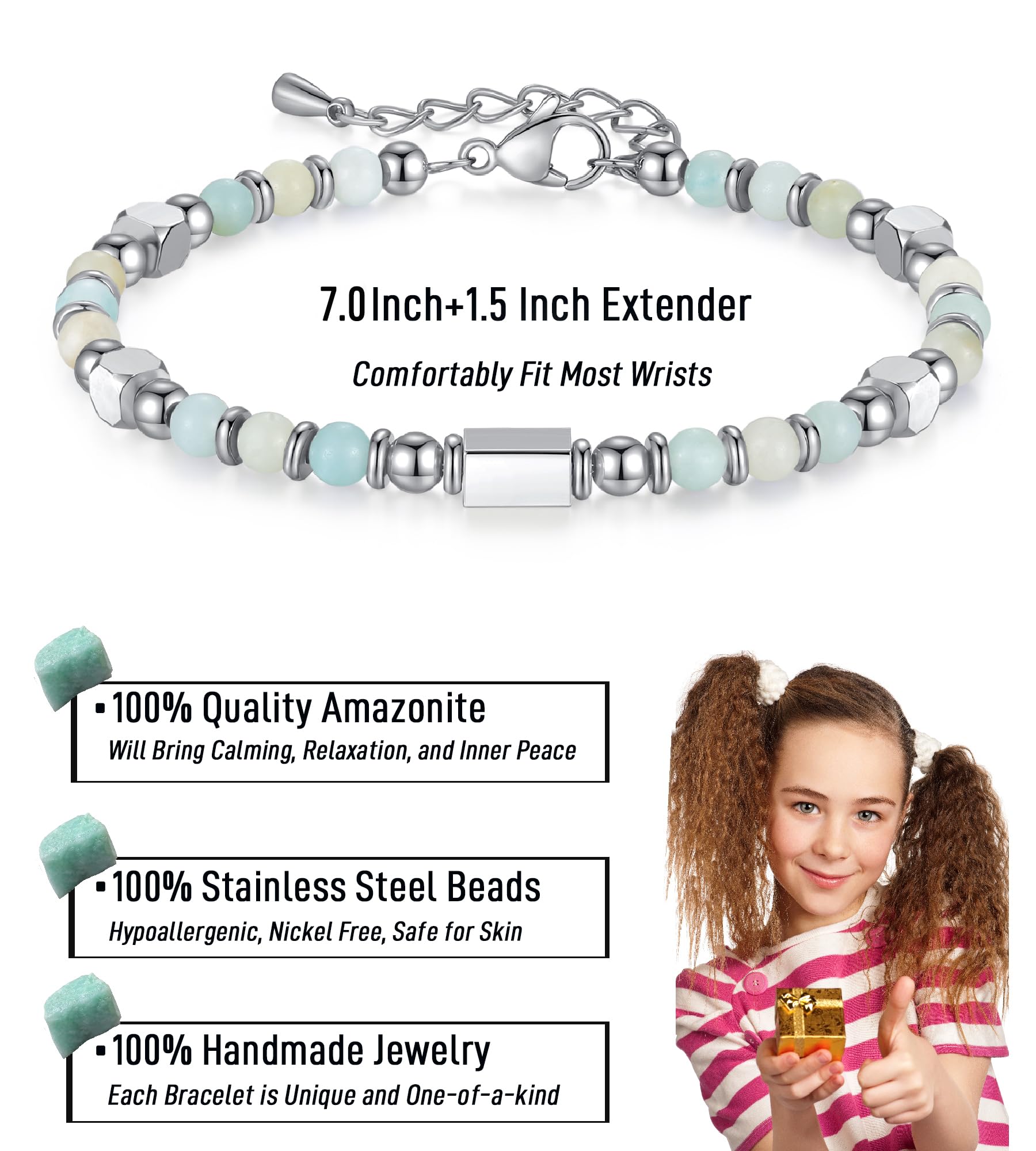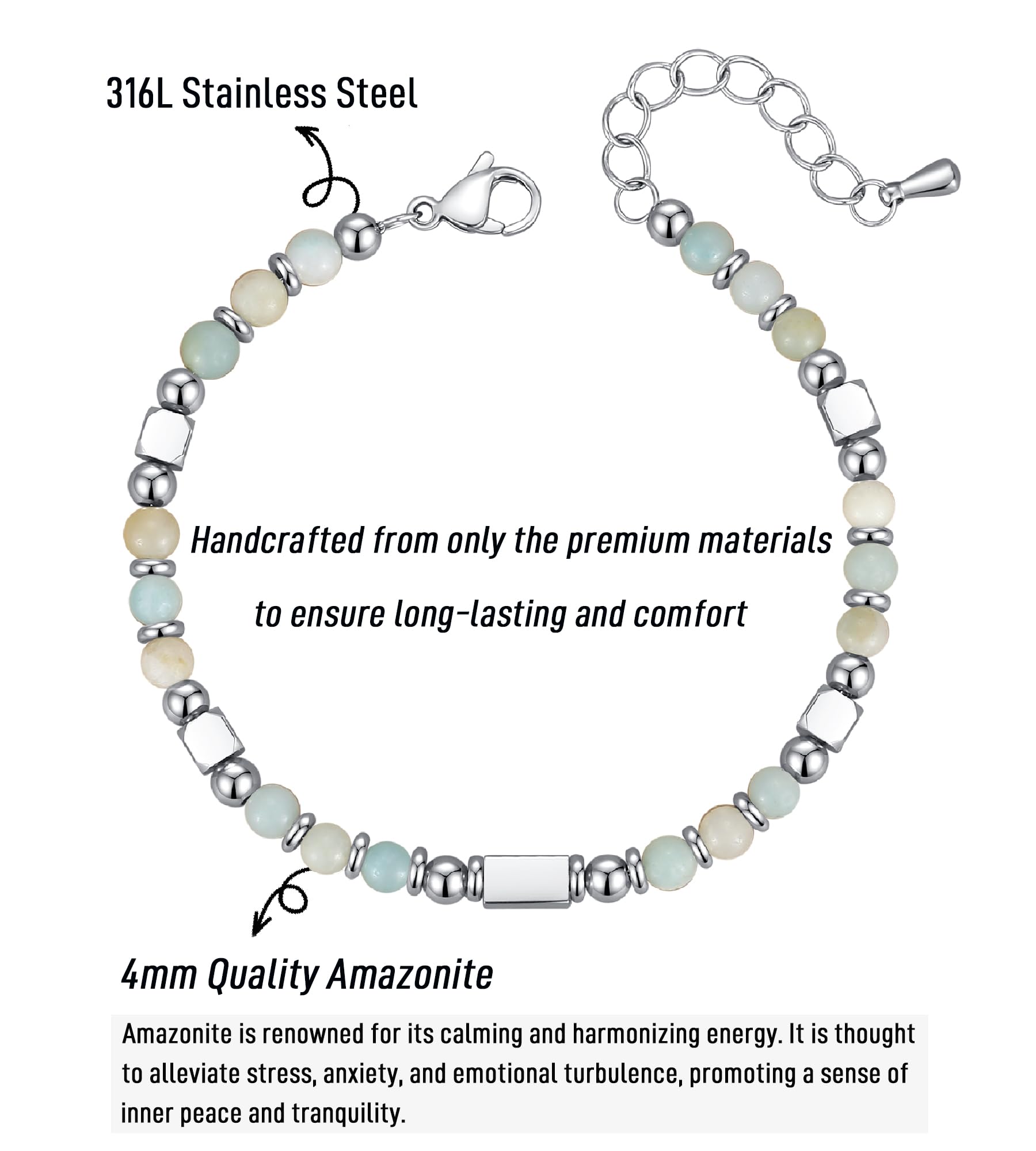 Quality: This birthday bracelet is handcrafted with 4mm quality Amazonite and 316L stainless steel beads. It is strong and hypoallergenic. Every natural crystal has been carefully selected one by one and strung together to create a piece of dainty birthday jewelry. We know how important this special piece may be, and that is why we make it with premium materials that can be worn for years to come.