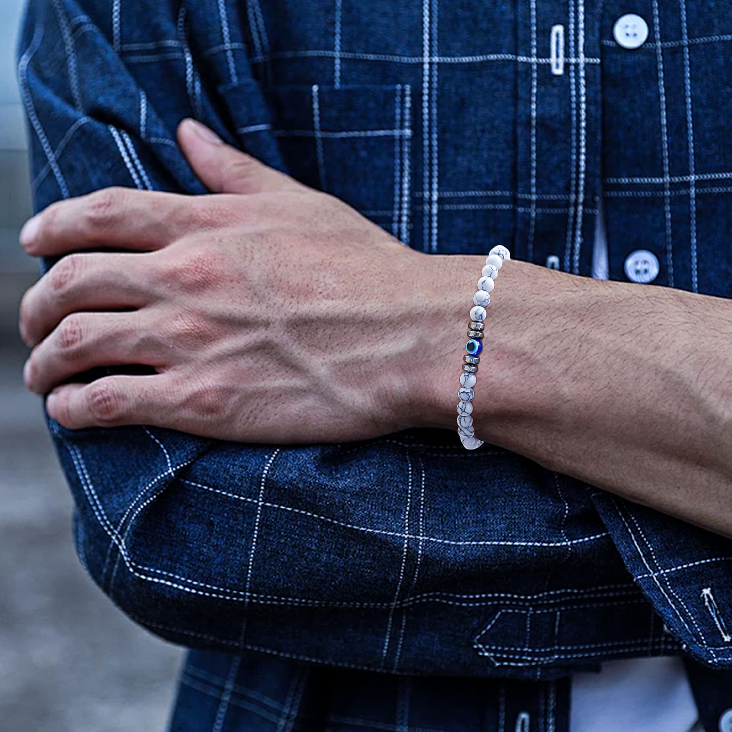 Good for daily: Elegant Evil Eye design, more choices for your daily wear. Different colors suitable for any occasion. Cute, business, leisure, simple&classic style bead bracelet set for men