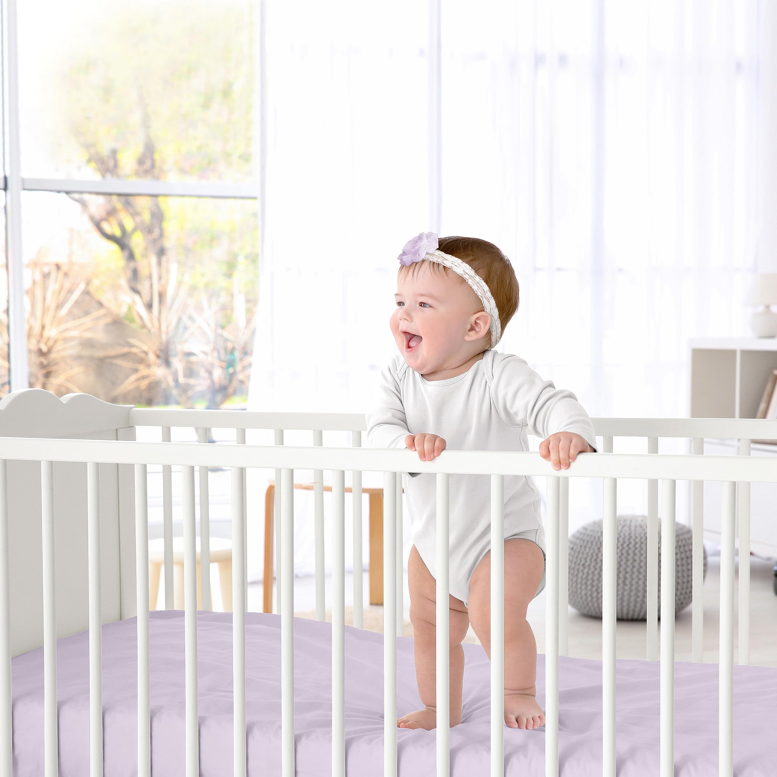 This brushed microfiber crib sheet features solid light lilac lavender purple violet and made to match the Boho Shabby Chic Bohemian Vintage Garden Flower Nature Elegant Colorful Pastel Watercolor Floral Peony Collection