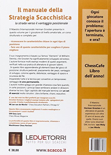 Ogni giocatore conosce il problema: l'apertura è terminata, e ora? Il Maestro Internazionale Herman Grooten presenta in questo volume per il giocatore di livello amatoriale, un corso strutturato e completo per riconoscere le caratteristiche chiave in ogni tipo di posizione e fare uso di queste caratteristiche per scegliere il piano migliore. Il suo insegnamento è basato sui famosi "Elementi" di Wilhelm Steinitz, che Grooten ha significativamente sviluppato ed esteso. L'autore fornisce molti esempi moderni di questi argomenti, verificati nella sua pratica di allenatore di giovani talenti. È la strada verso il vantaggio posizionale. Qui apprenderete gli elementi base del gioco di posizione: strutture pedonali, piazzamento dei pezzi, vantaggio di sviluppo, colonne aperte, debolezze, vantaggio di spazio e sicurezza del Re. Imparerete l'arte e la tecnica per convertire un temporaneo vantaggio in uno permanente. L'autore inoltre spiega con grande chiarezza cosa fare quando, in certe posizioni, i principi base sembrano andare in direzioni diverse tra loro. Ogni capitolo termina con un set di esercizi molto istruttivi.