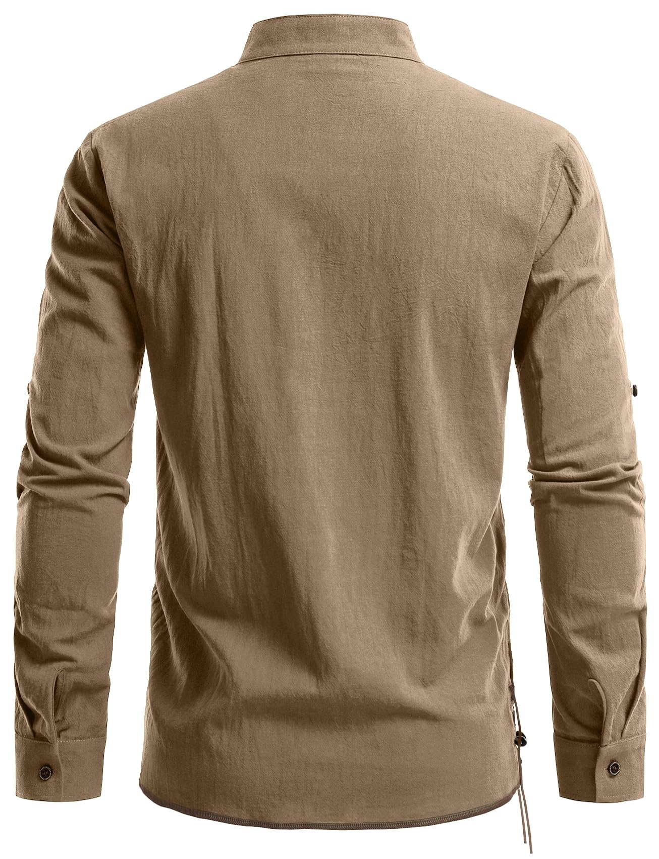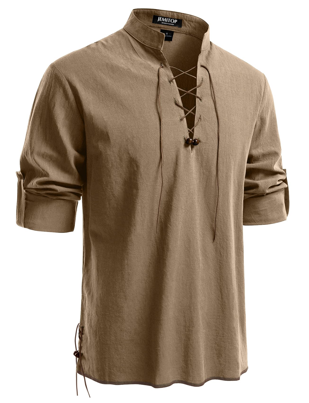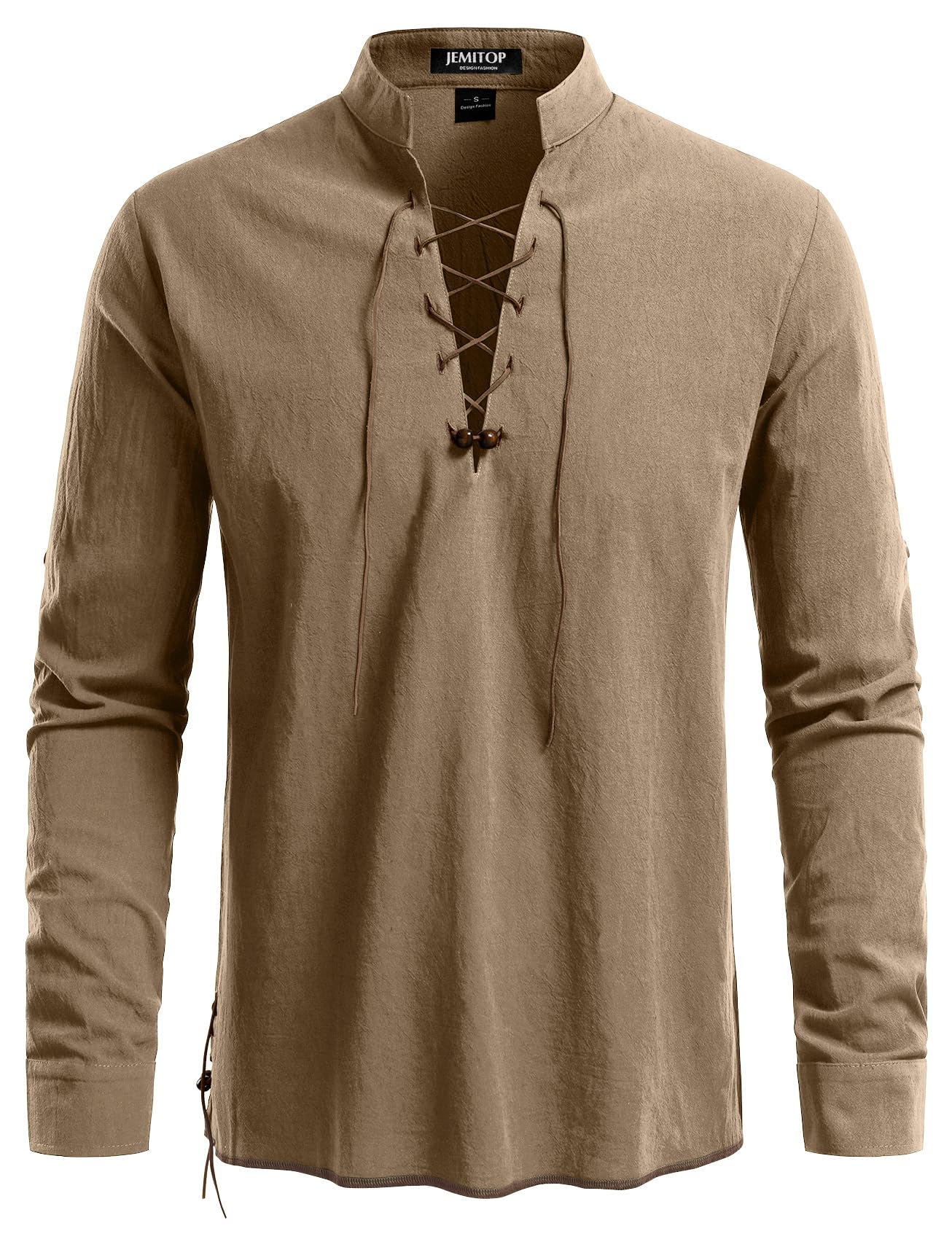 Design Concept: Cosplay costume for renaissance,pirate,viking,medieval,halloween / Retro drawstring shirt / Regular fit / Mandarin collar / Long sleeve / Rolled sleeve
