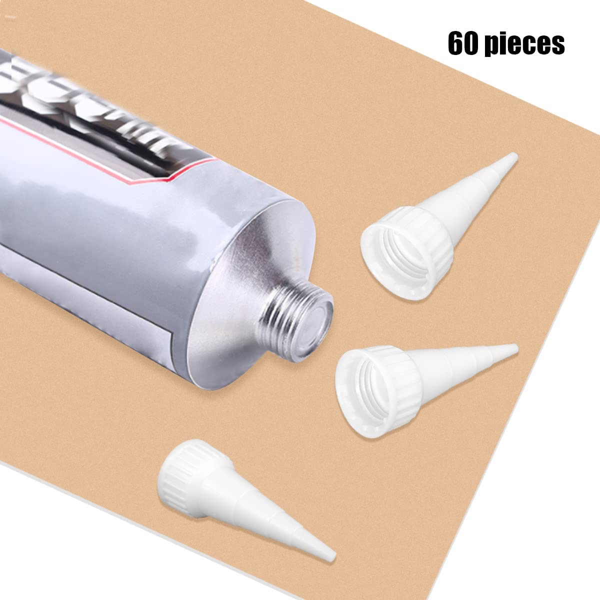 60 pieces snip tip applicator tips cap for E6000 craft glue 3.7 ounce adhesive tubes Specifications: Each snip tip applicator size: approx.: 1.7 x 0.7 inches (4.2 x 1.9 cm) Material: plastic Color: white
