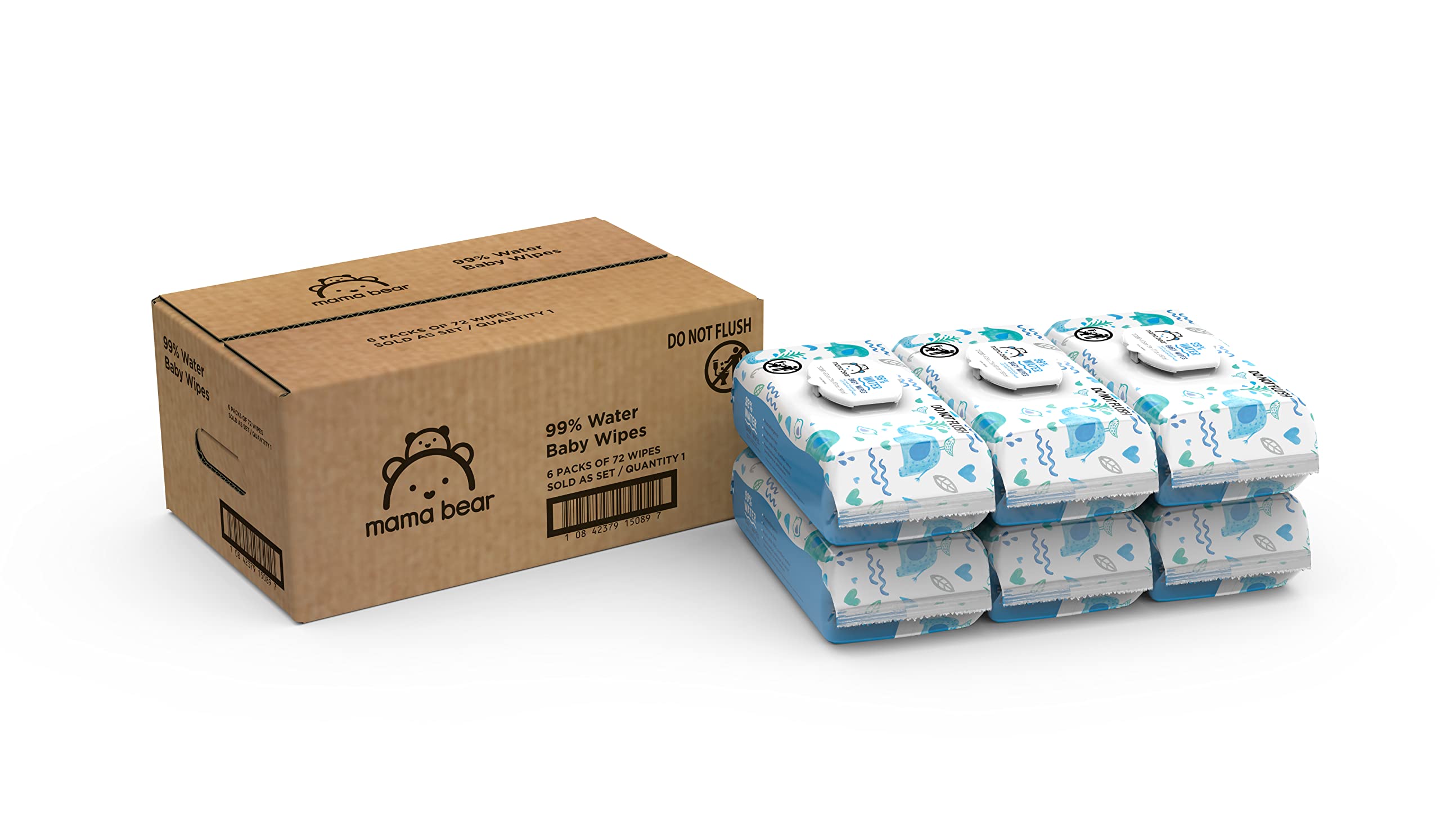Amazon Brand - Mama Bear 99% Water Baby Wipes, Hypoallergenic, Fragrance Free, Full Pallet, 51840 Count (720 Packs of 72)
