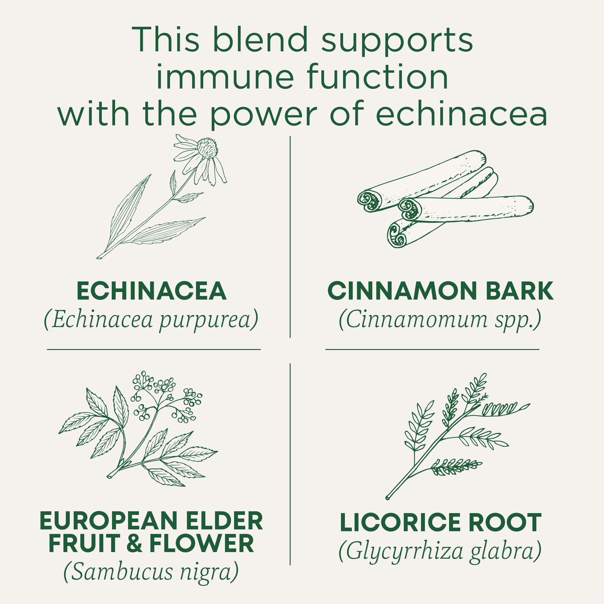 Plant Story: Indigenous to North America, Echinacea is one of the most well-studied plants in herbalism. Combined with licorice root and the celebrated elderflower and elderberry, this tea will give your immune system a boost when you need it most.*