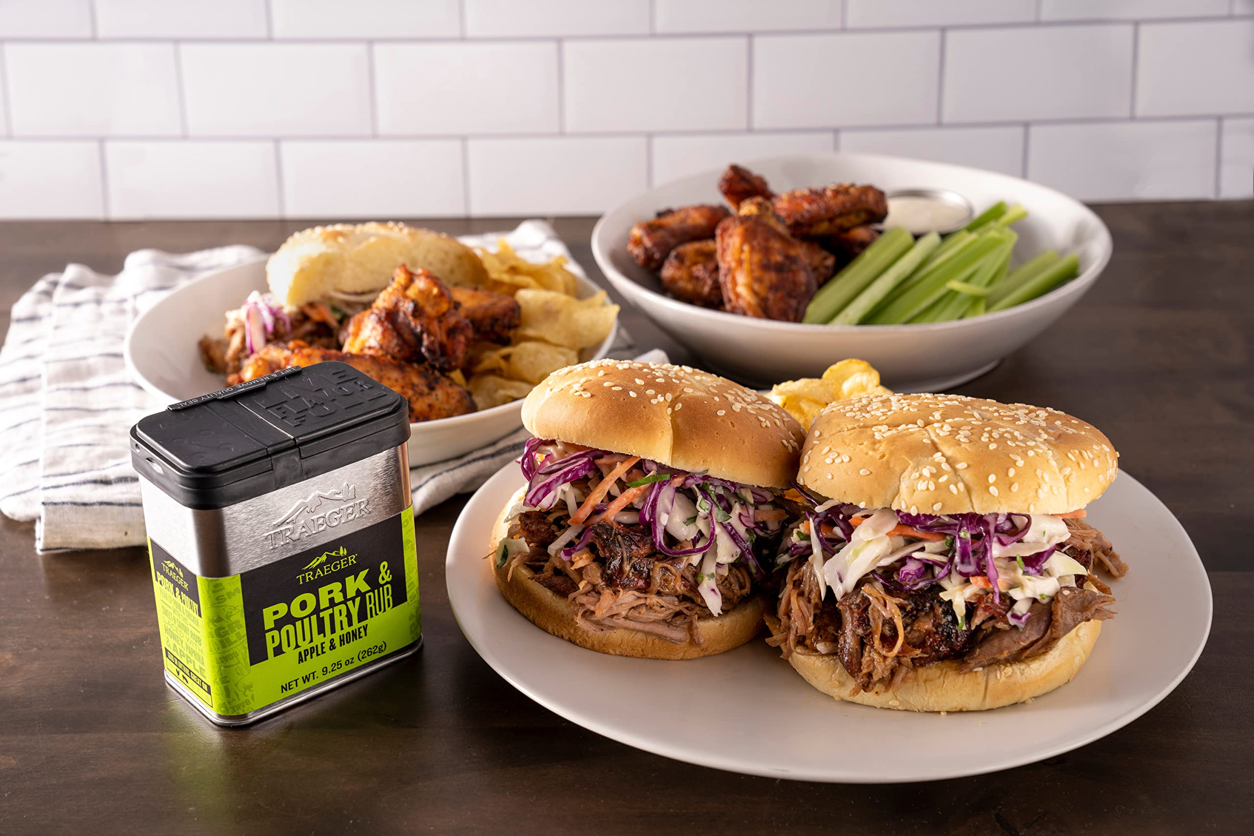 Apple and honey flavors join forces in Traegerβs Pork & Poultry Rub with savory paprika and onion to guarantee your chicken and pork creations are smokinβ delicious. Shake some on any milder meat youβre cooking and you canβt go wrong.