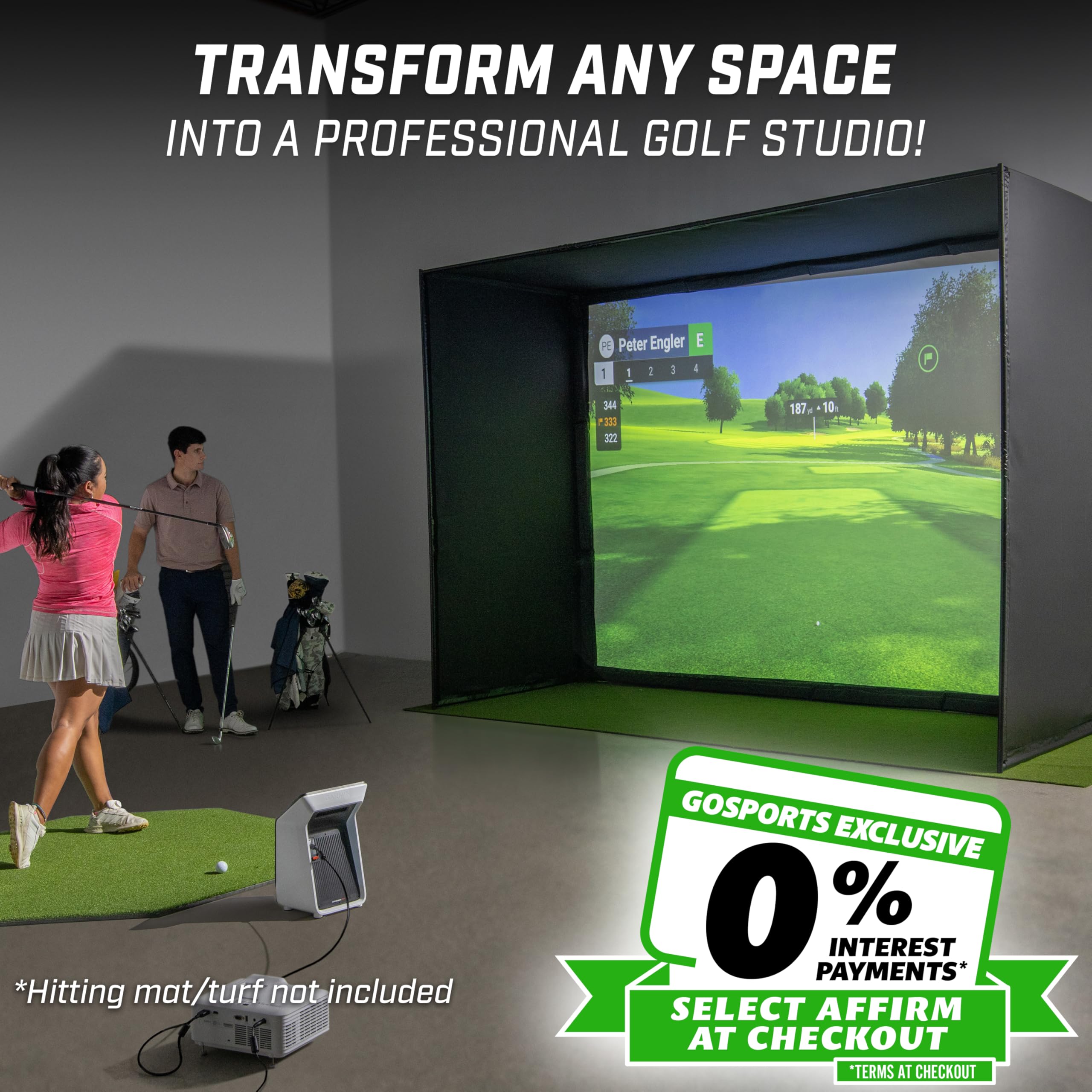 PROFESSIONAL SIM ENCLOSURE: Provides the ideal 4:3 aspect ratio golf simulator screen with side and top enclosures; Measures 12 ft wide x 9 ft high x 6 ft deep, turning your space into a professional indoor golf studio