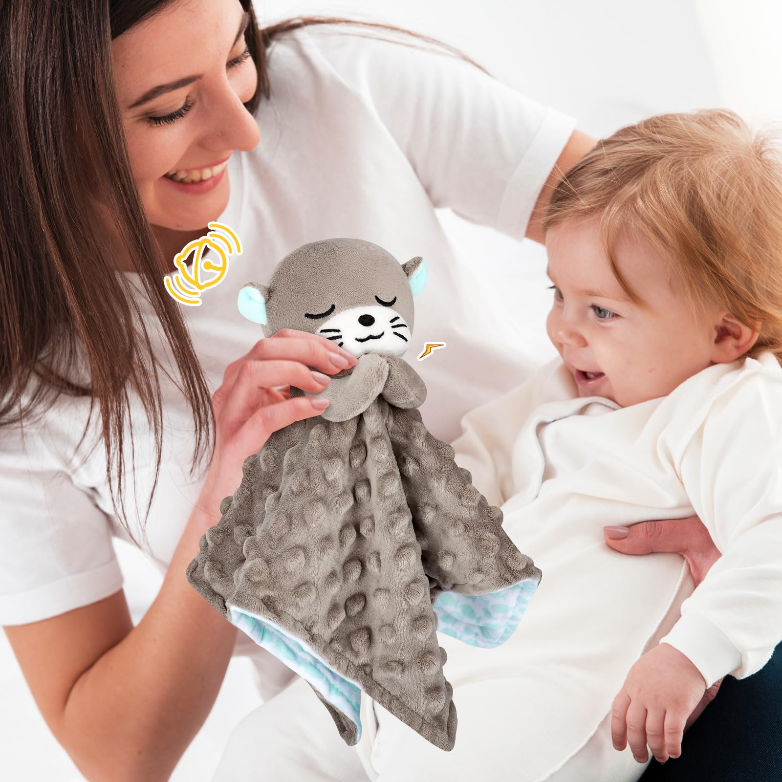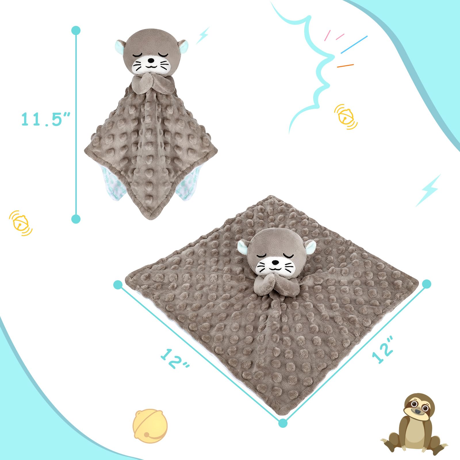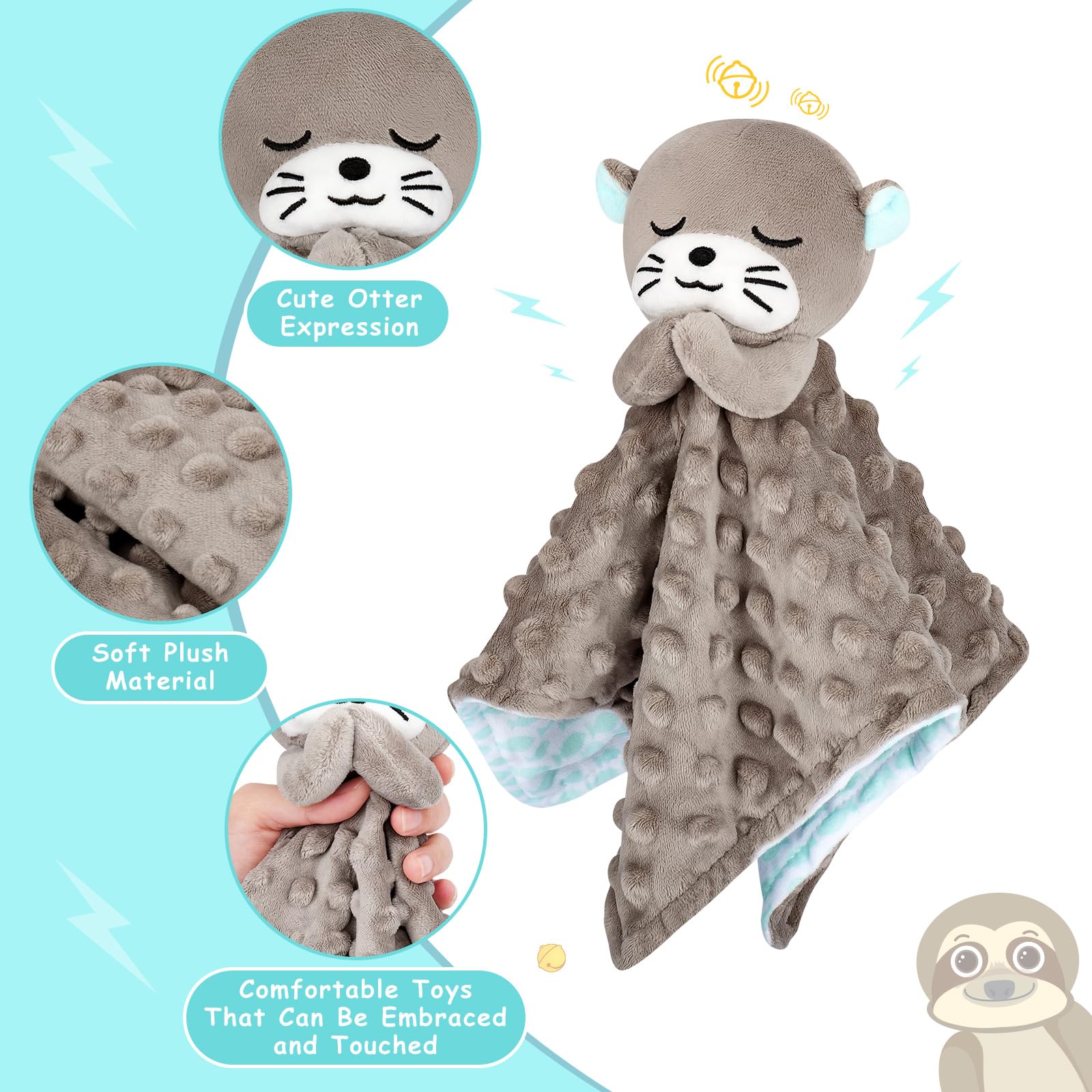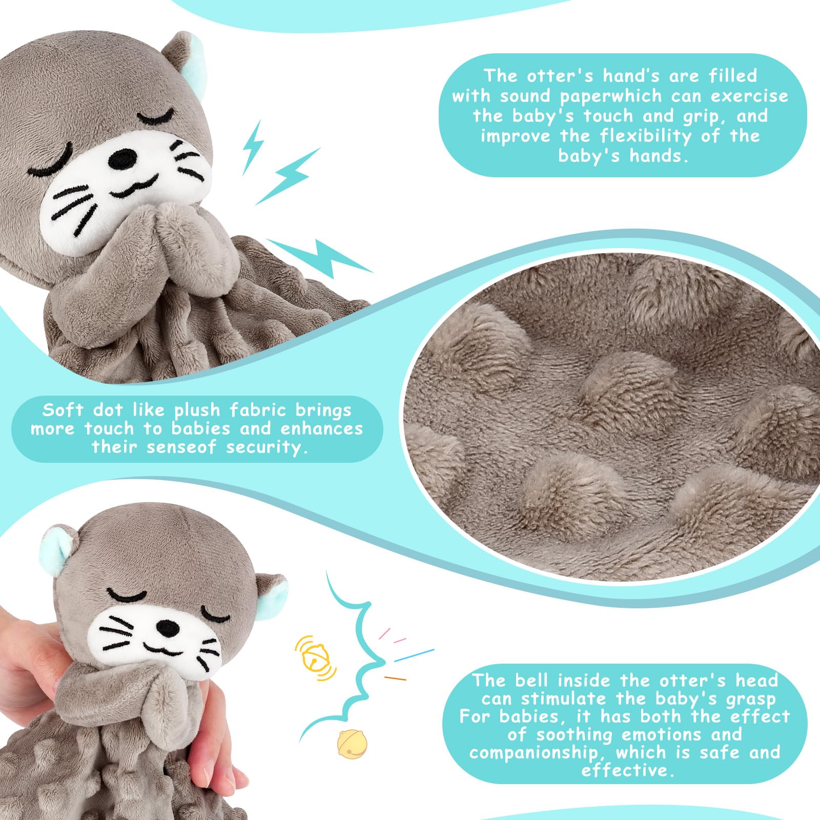 【Multipurpose of Baby Lovey Security Blanket】The otter's hands are filled with sound paper, which can exercise the baby's touch and grip, arouse the baby's curiosity, and improve the baby's hand flexibility; The bell inside the otter's head can stimulate the baby's grasp of sound, giving them an initial understanding of sound; For infants, it has both a soothing effect and a companionship effect, which is safe and effective.