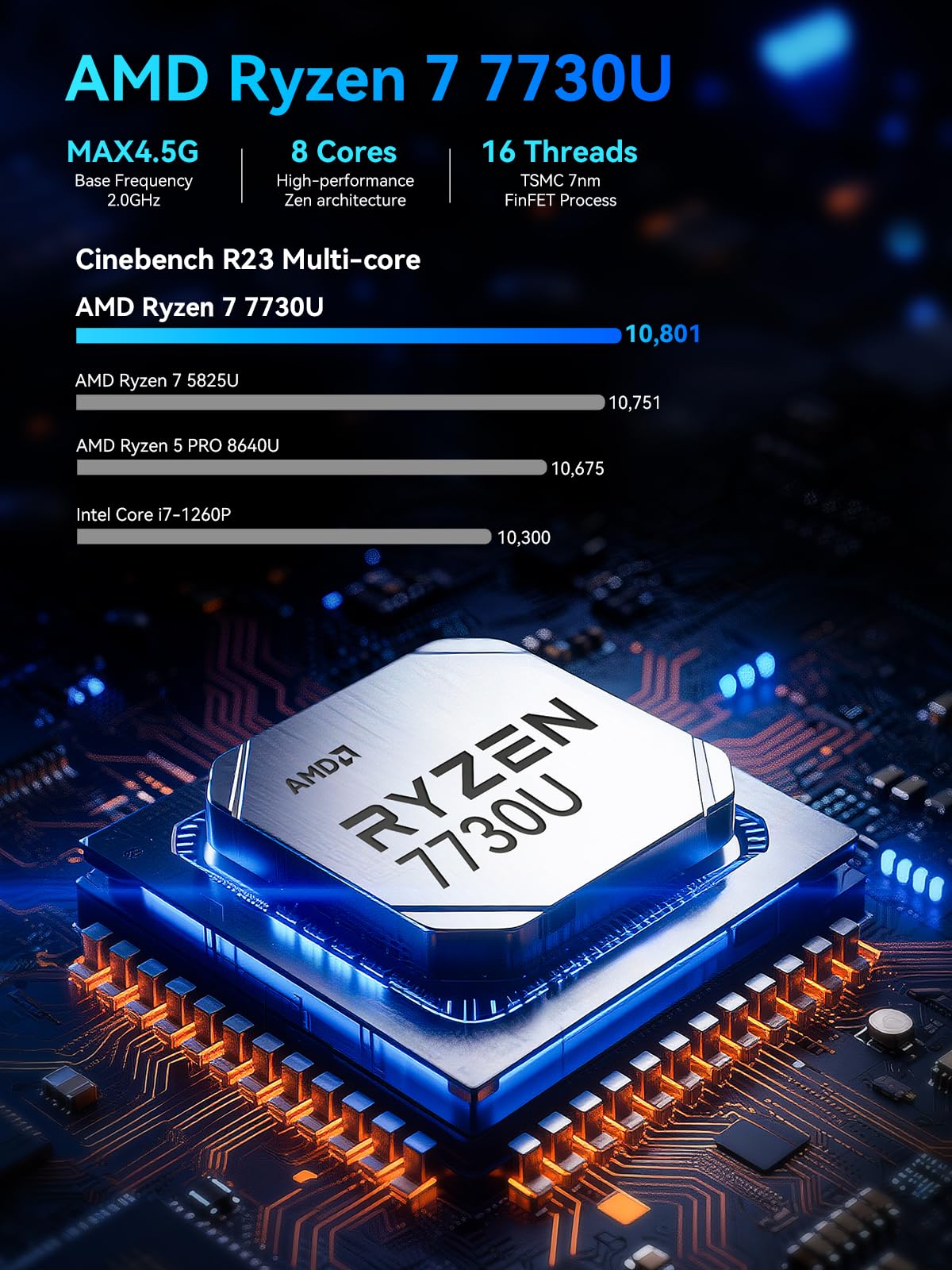 Office Gaming Mini PC - UPGRADED GMKtec Nucbox M5 Ultra Series is equipped with the powerful AMD Ryzen 7 7730U processor, 8 Cores/16 Threads, Base 2.00GHz (Power Saving Quiet Mode) with Turbo Boost up to 4.50GHz (Performance Mode) in BIOS settings, Based on the ZEN 3+ architecture, this small but powerful mini pc delivers satisfying results in productivity, office work, and gaming. 35% Performance increase over AMD Ryzen 5 7430U/ Ryzen 7 5700U, 5600U, 5560U, 5500U.