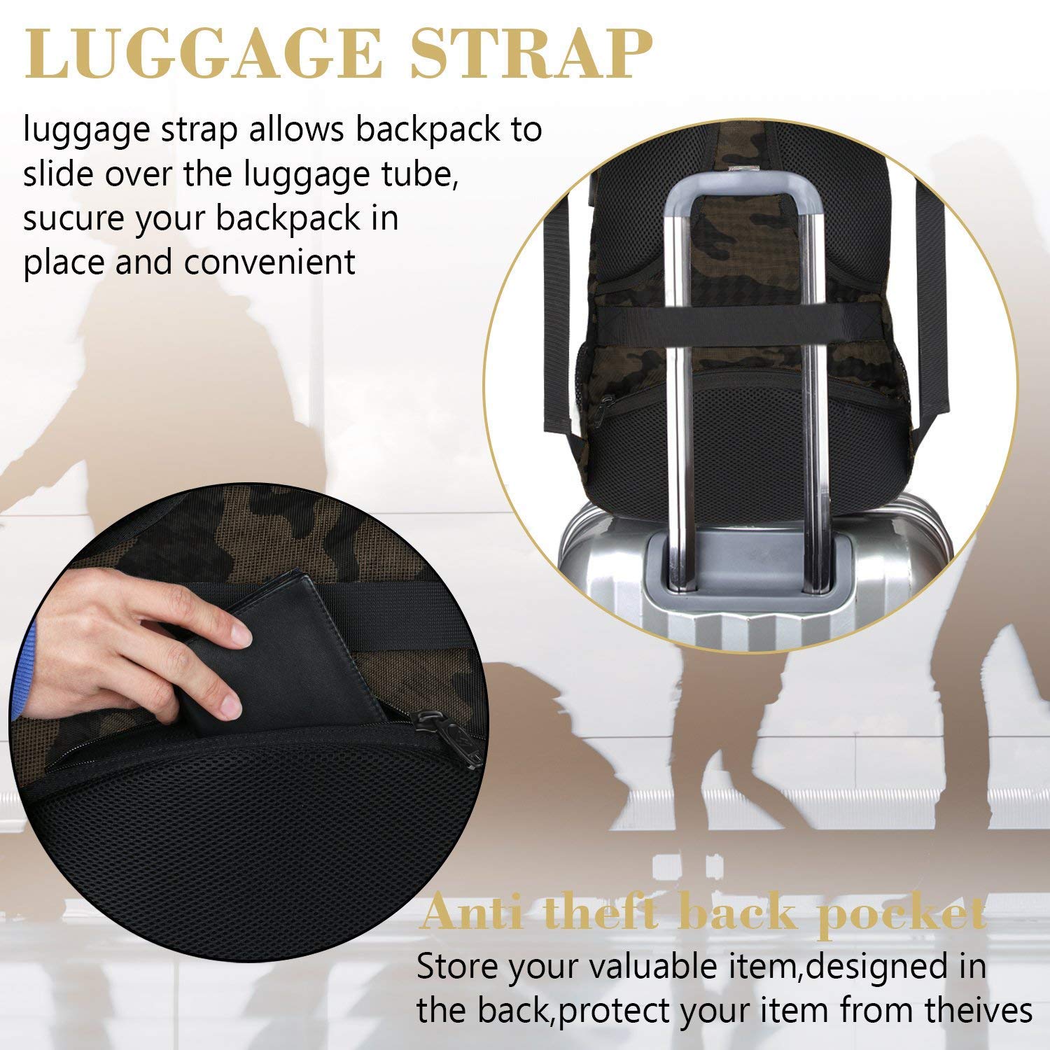 FUNCTIONAL & SAFE: A luggage strap allows backpack fit on luggage/suitcase, slide over the luggage upright handle tube for easier carrying. With a hidden anti theft pocket on the back protect your valuable items from thieves. Well made for international airplane travel and day trip