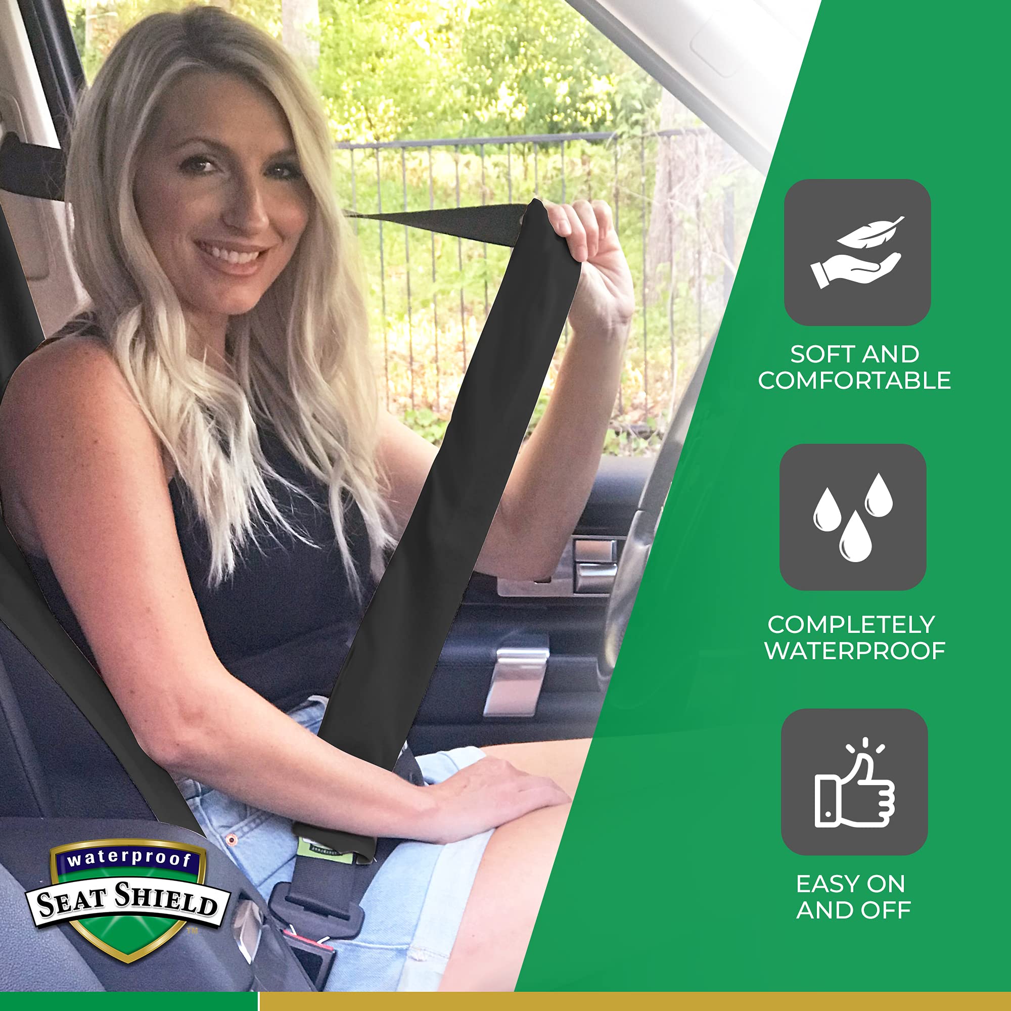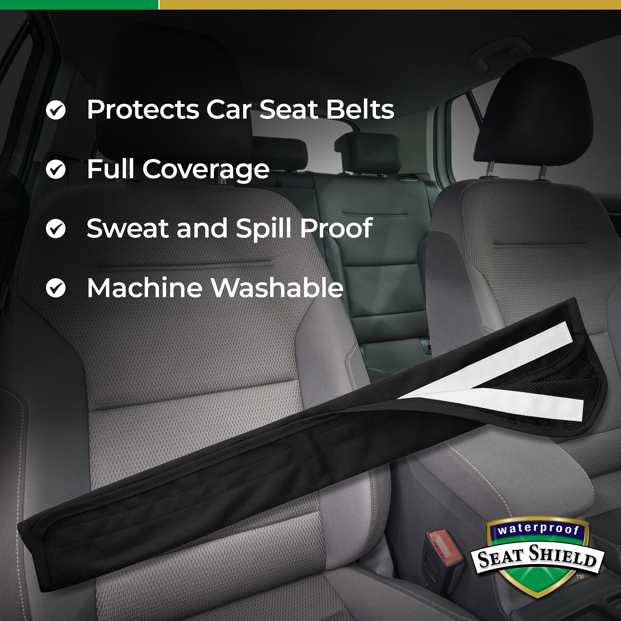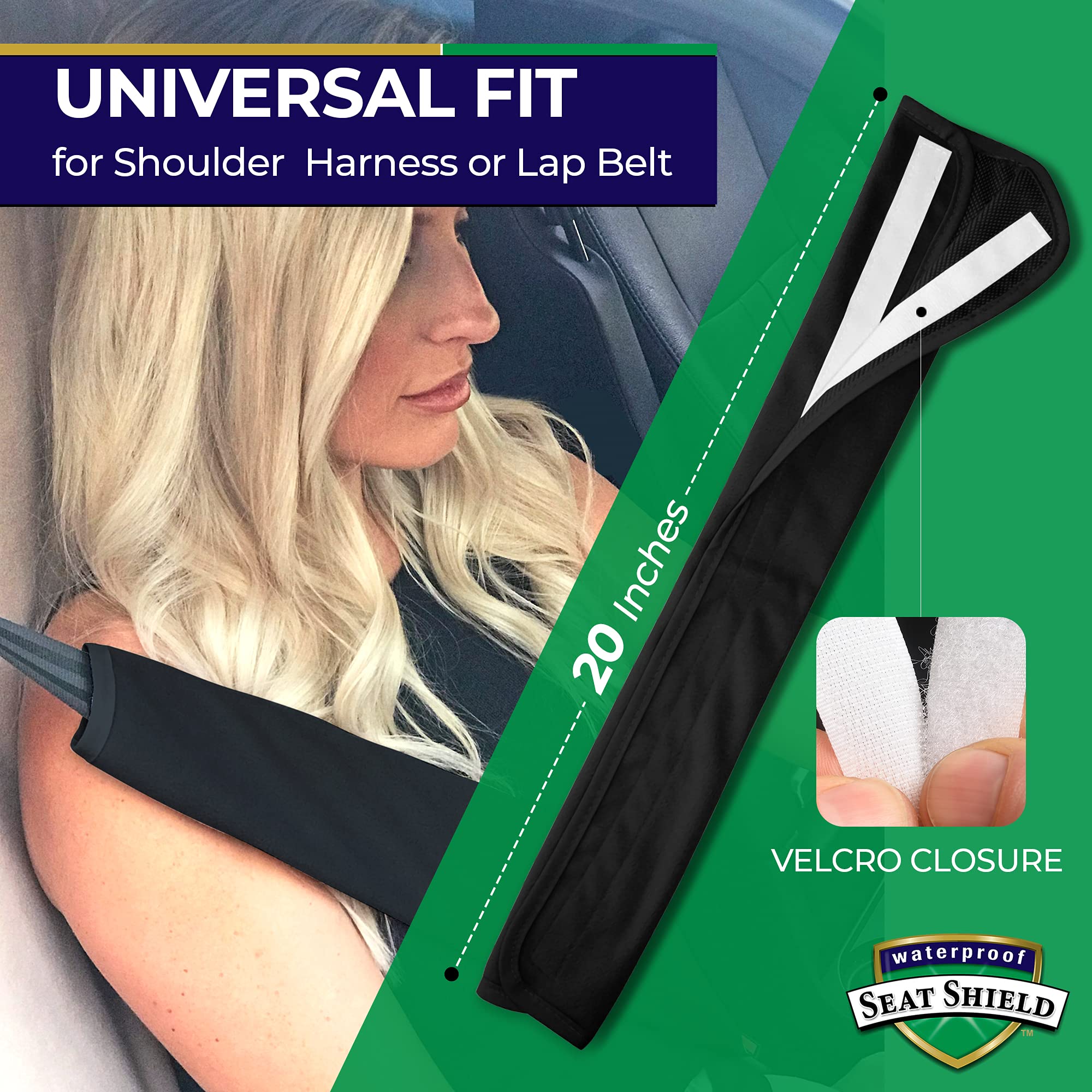 EASY TO INSTALL CAR SEATBELT COVER : Waterproof SeatShield strap cover has a piece of durable velcro and a whole piece loop on the back. Choose a proper position to cinch car seat belt protector - make it fit perfect for your seat belt to stop it sliding down.