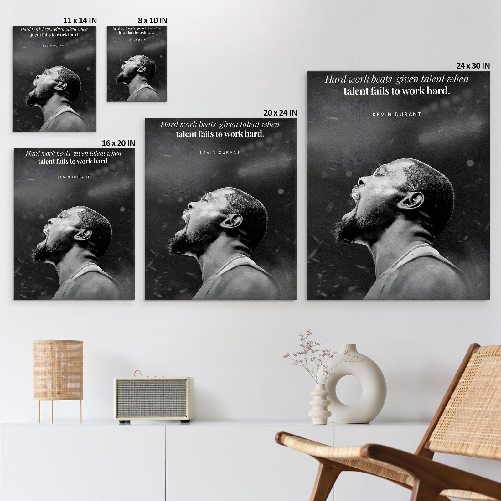 Clean Print Detail on Woven Canvas – Printed with color inks on woven canvas for crisp lines, strong contrast, and solid color areas—great for sports-themed room decor and basketball wall art displays.