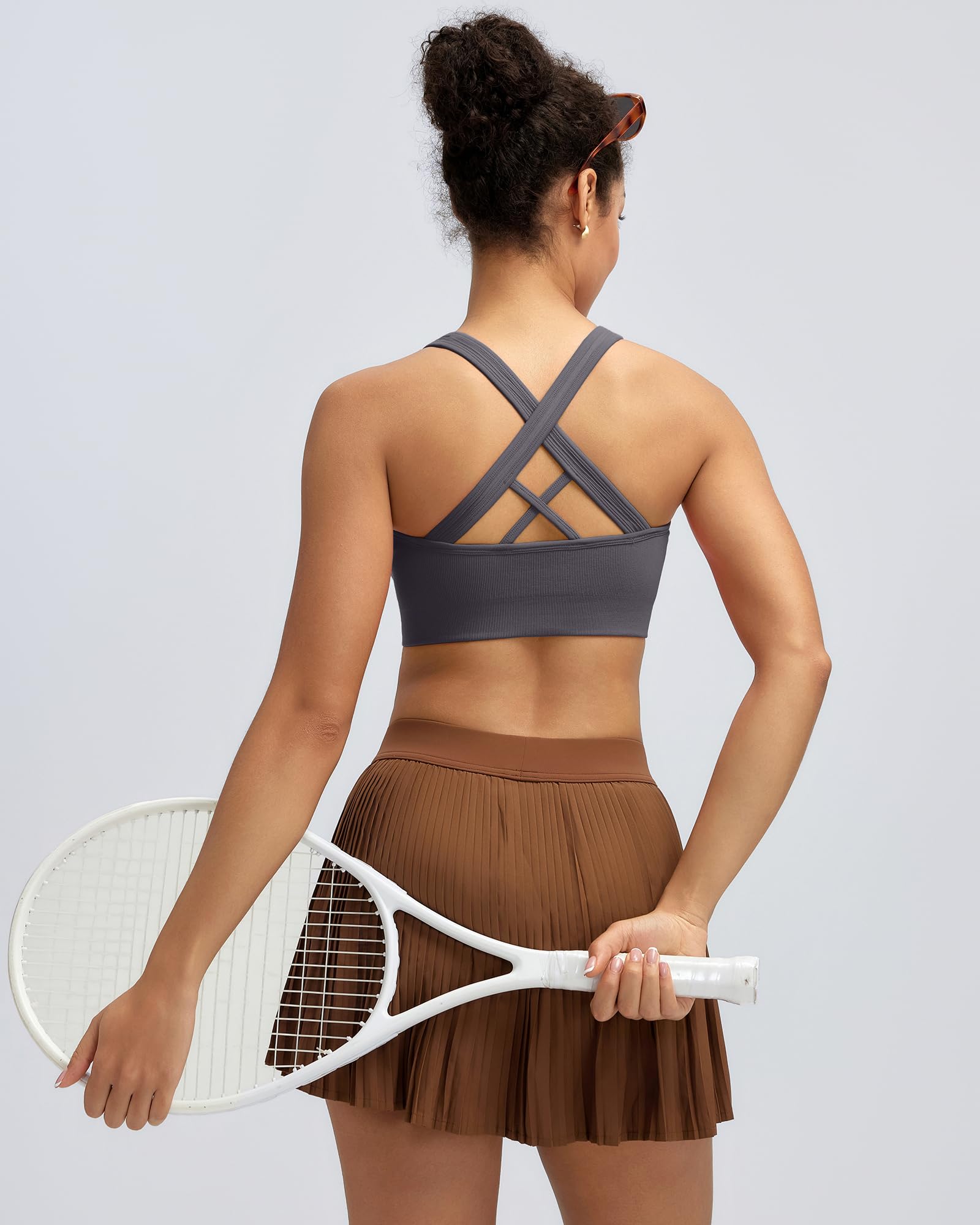 WHY WE MADE THIS:Need a sports bra that does it all? Look no further.This sweat-wicking cross-strappy sports bra gives you the coverage and support you need for yoga, run,and the gym—without restricting your movement or breath fabric has added lycra that allows the sports bras for women to stretch with you and retain its shape over time.Slip in optional for full coverage—if you want it.This high impact sports bras for women is intended to provide great shape retention,long-lasting comfort.