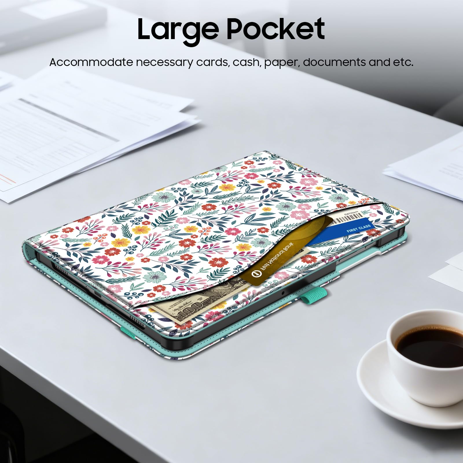 Front Pocket: A front Document Pocket to store your business cards, bank cards, notes, bills or other personal belongs while on the go