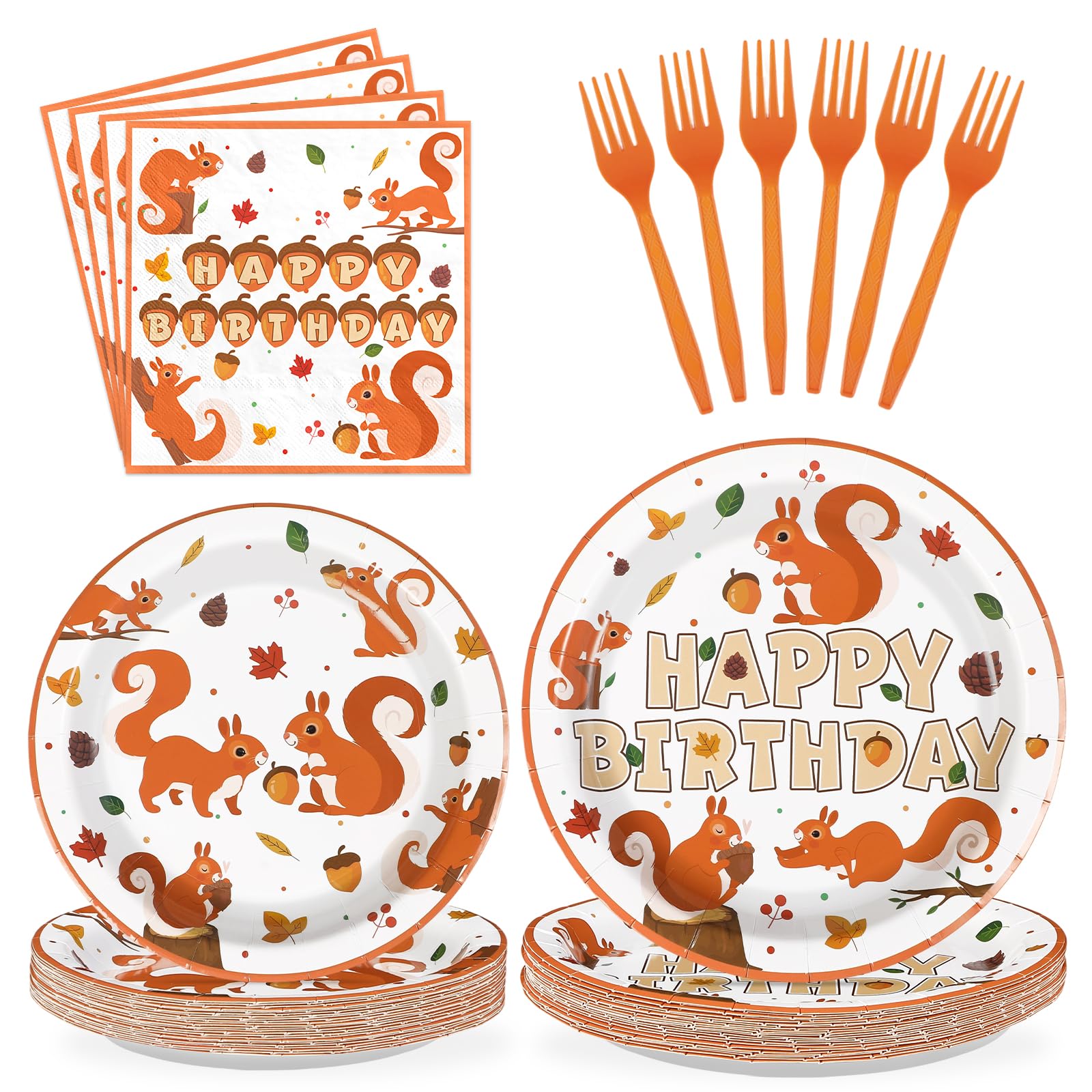 Fall Squirrel Birthday Design: Our squirrel birthday tableware is based on a vibrant warm orange color and features cute squirrel patterns. It not only captures the visual focus with eye-catching color schemes and adorable elements but also creates a unique theme design that differs from traditional cartoons, creating a warm and cheerful atmosphere suitable for both daily dining and party scenarios in a novel and individualistic way