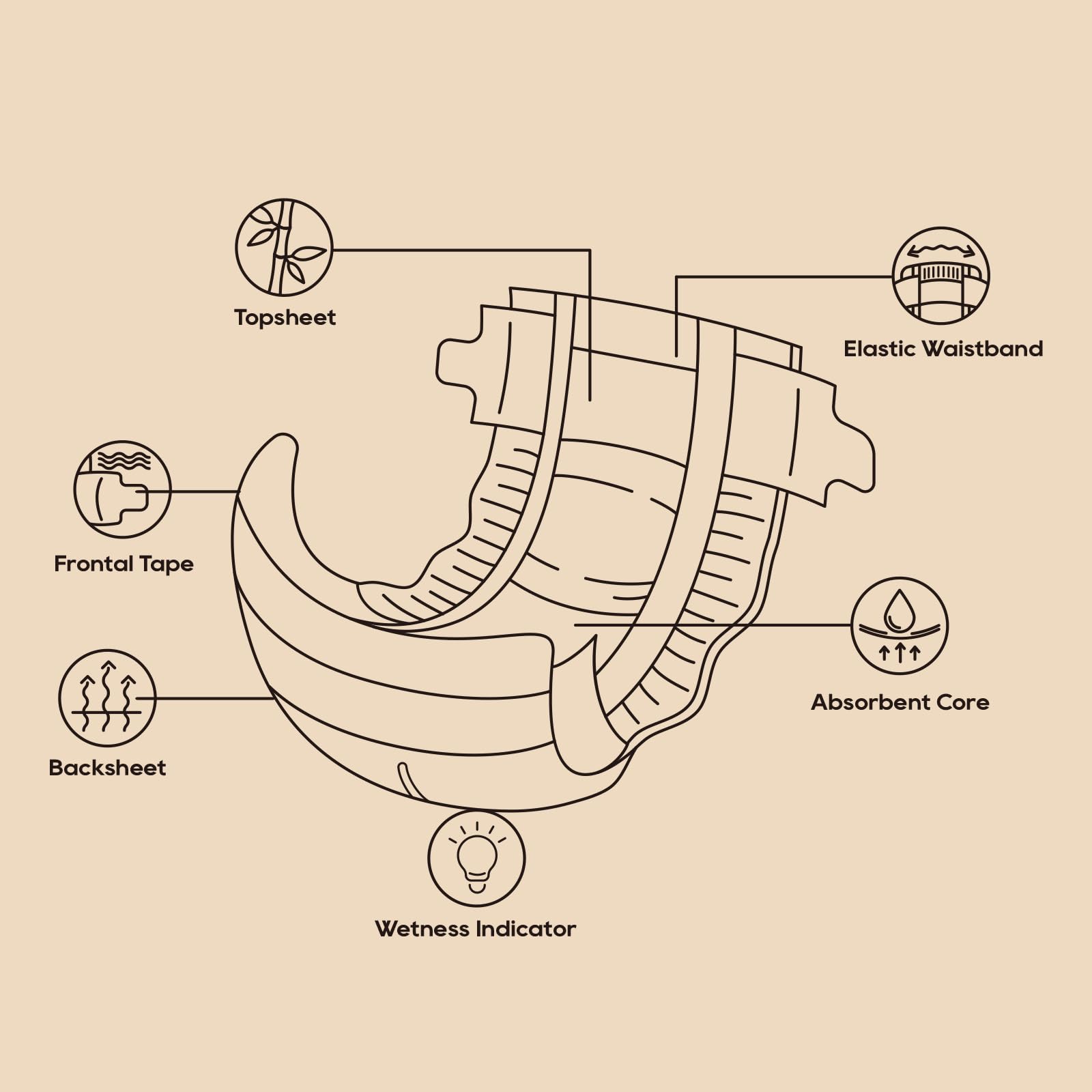 Kind to Our Earth: Reduces plastic waste by 30% compared to regular disposable diapers by using 100% bamboo viscose topsheet & backsheet.