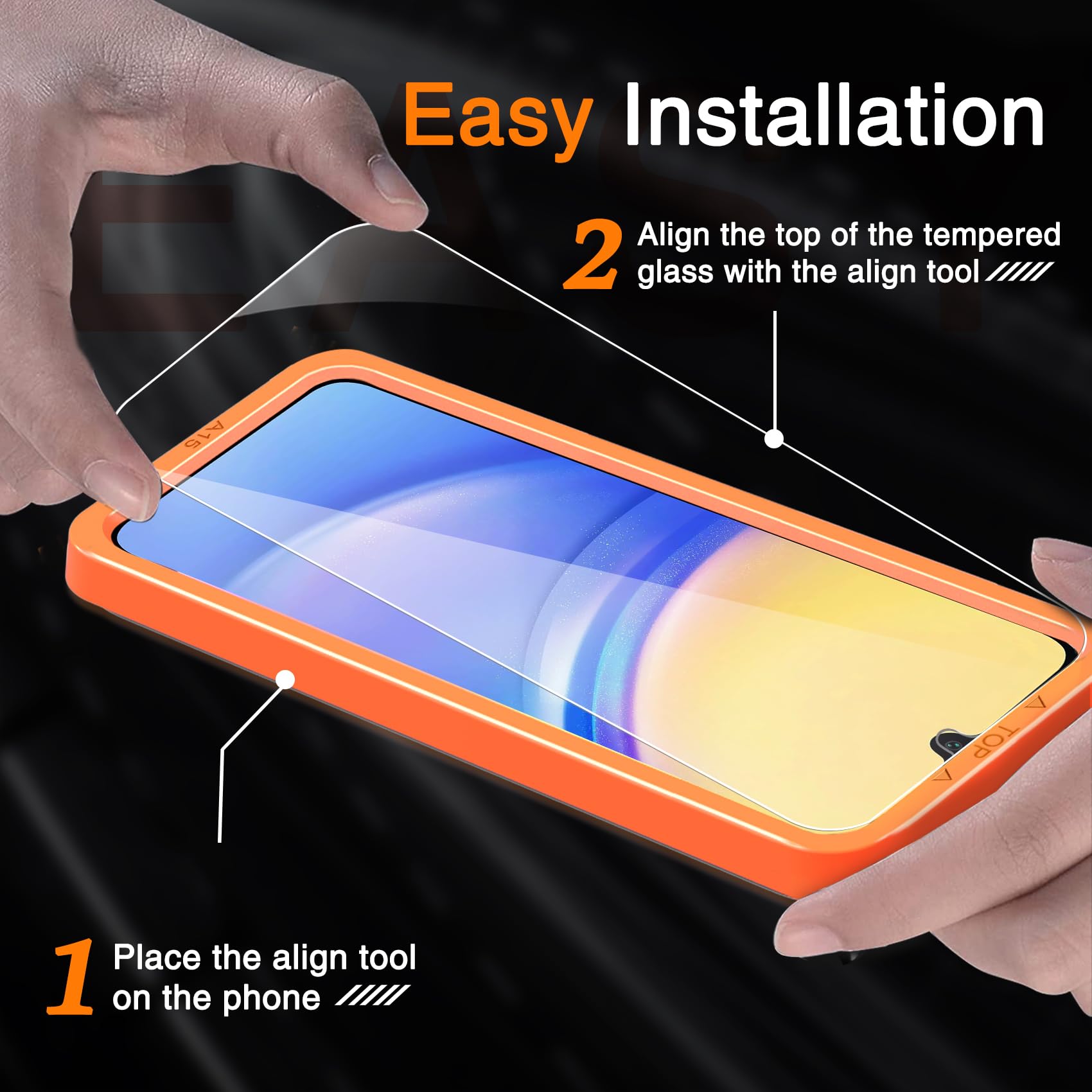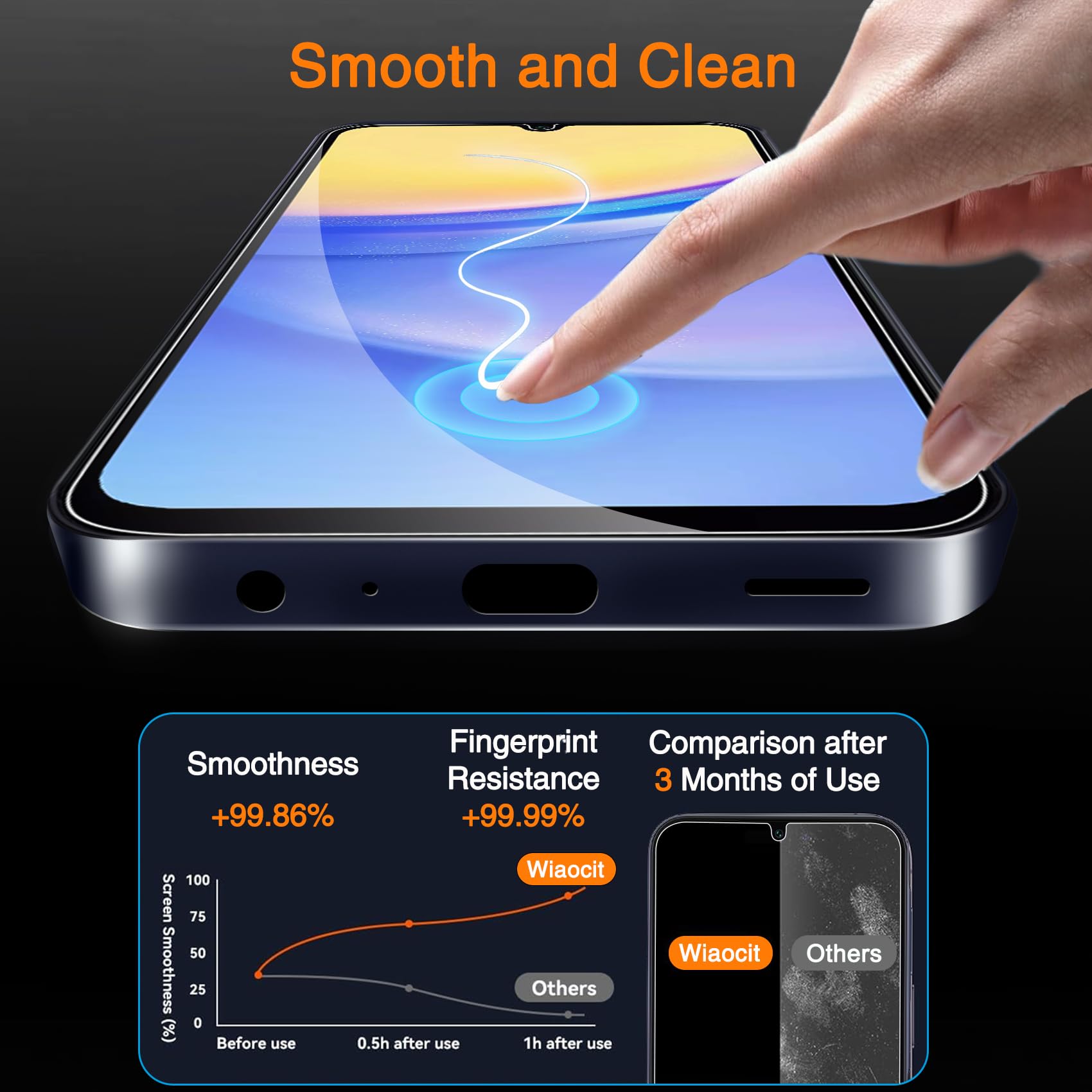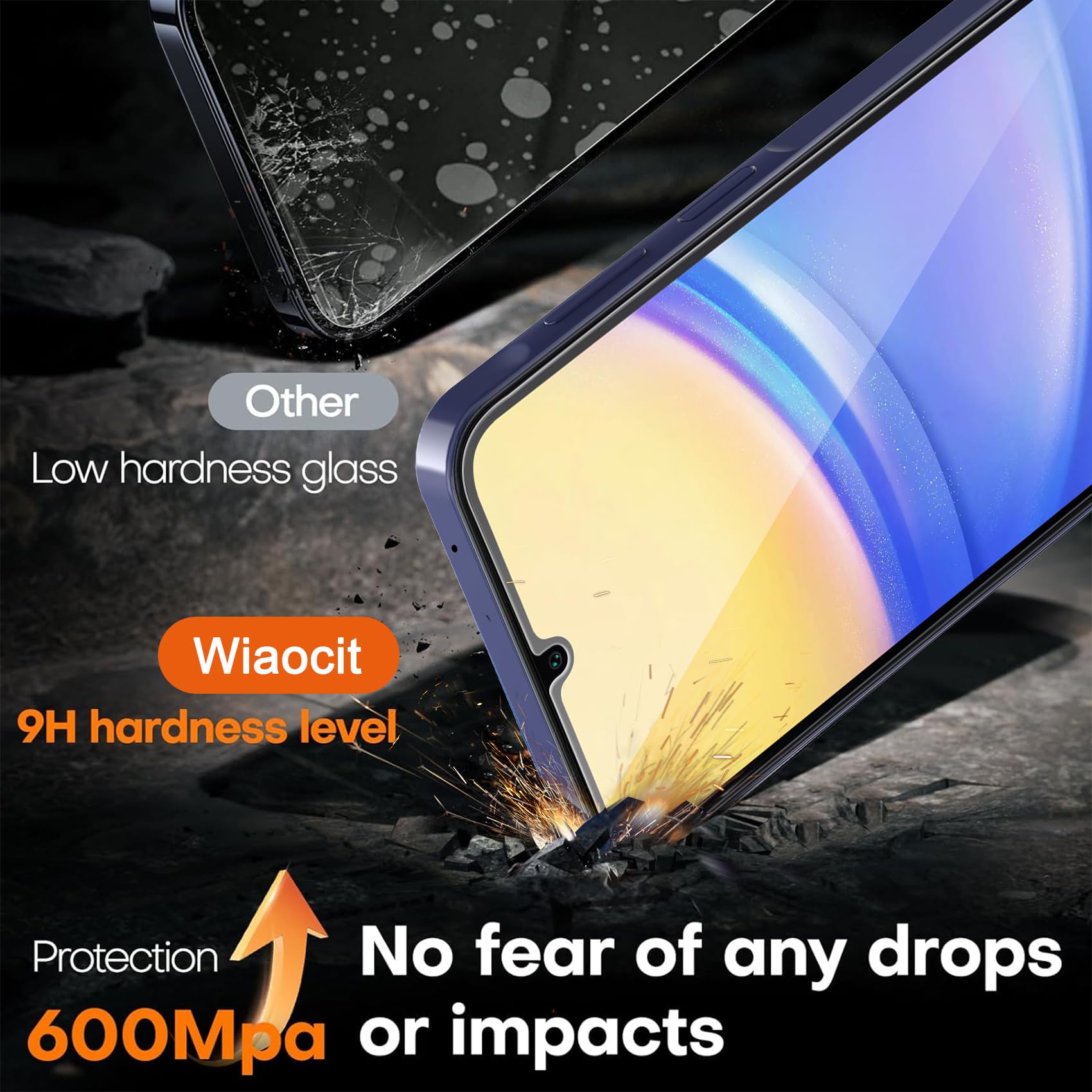 [Easy Installation]: The screen protector Samsung Galaxy A15 5G designed by Wiaocit comes with a simple installation frame that makes it very easy to align the tempered glass with your phone screen and will not leave any bubbles. Enjoy your screen as if the protector de pantalla doesn't even exist. Please watch our installation video tutorial before installing.