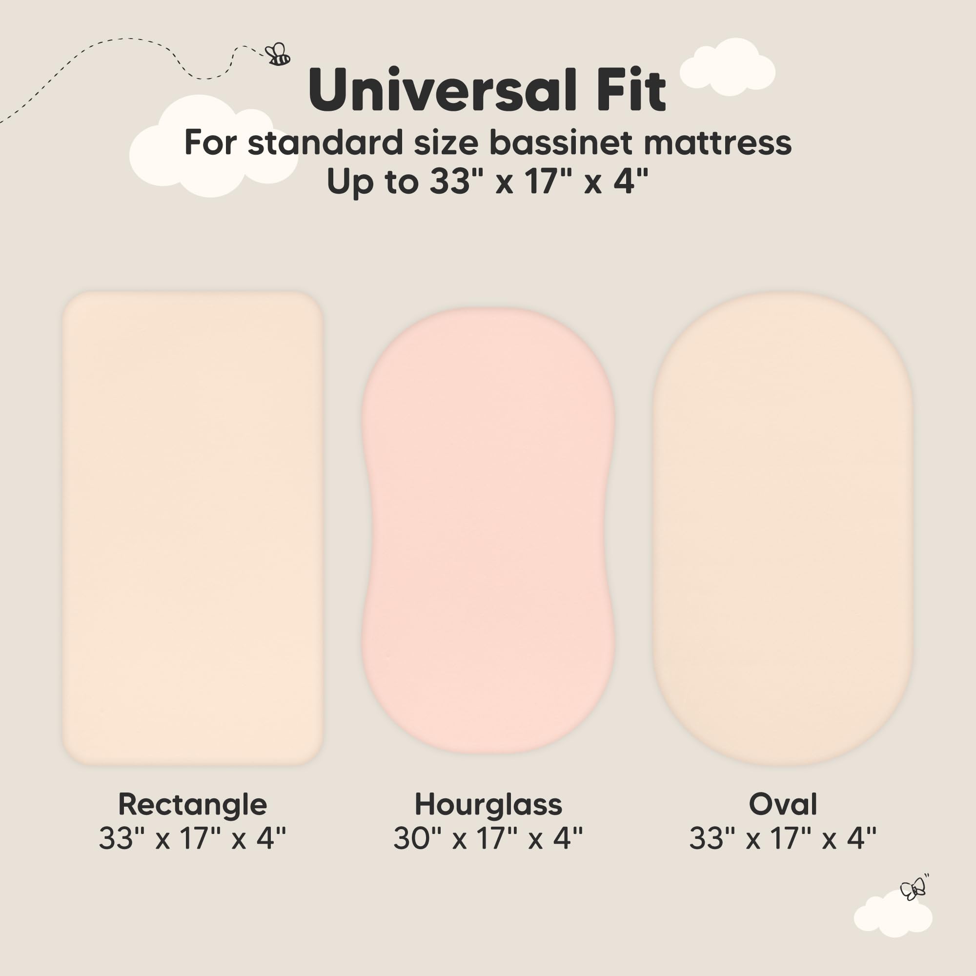2-Pack Waterproof Baby Bassinet Sheets - KeaBabies Soothe Waterproof Bassinet Sheets, sized at 33" x 17" with a depth of up to 4", provide a universal fit for all bassinet mattress pad types. Suitable as hourglass, oval, rectangle bassinet sheets.