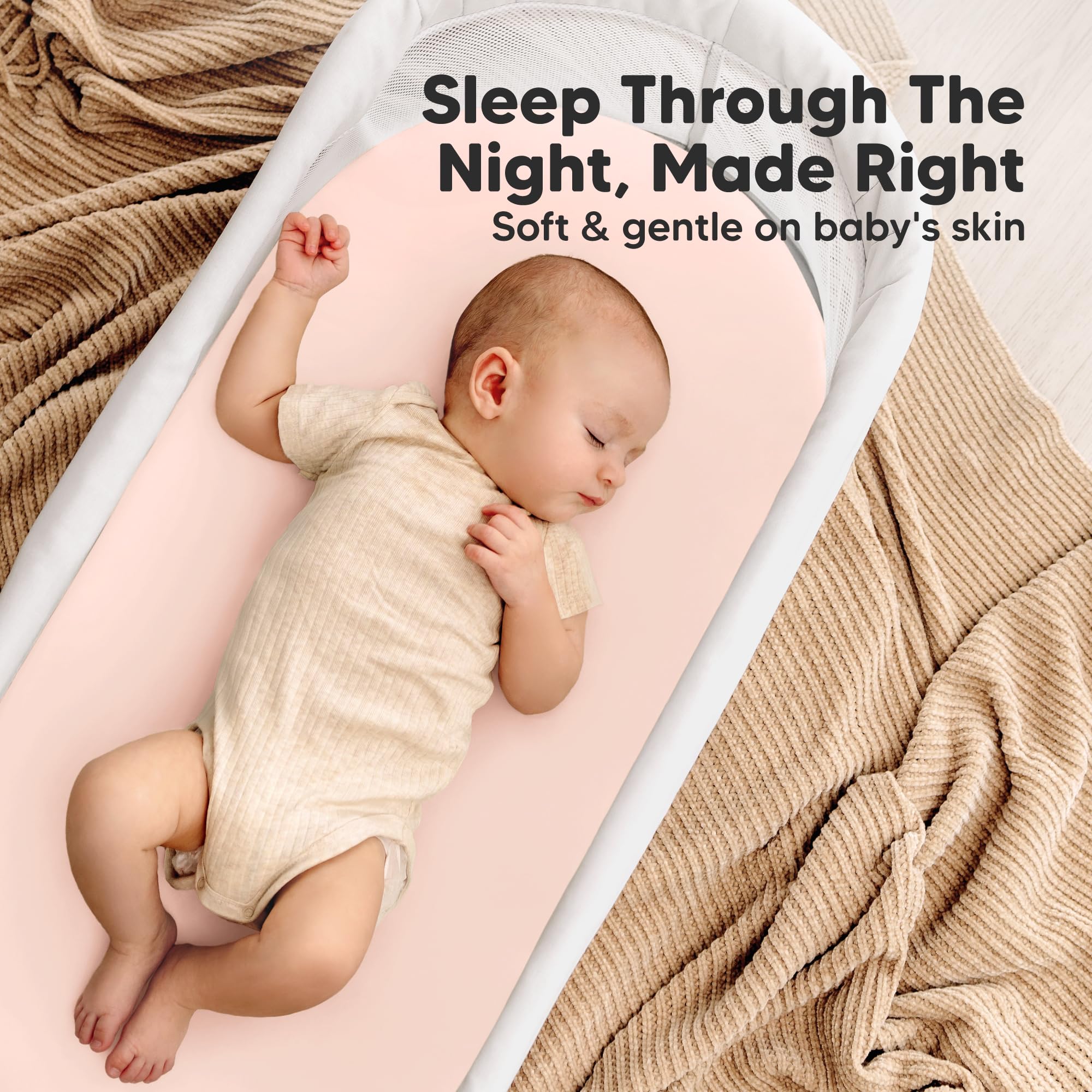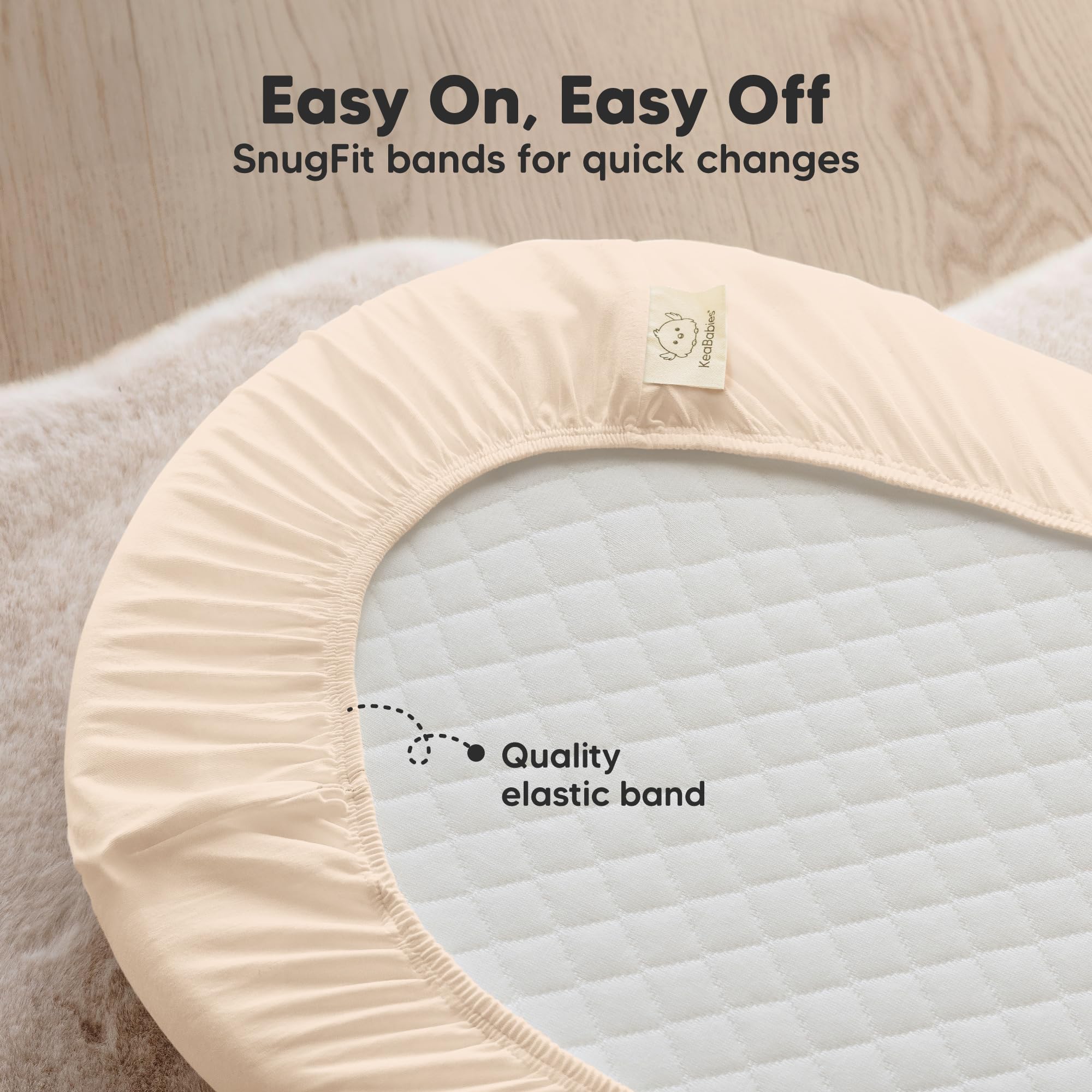Easy To Put On - Our Soothe Waterproof Bassinet Fitted Sheet uses SnugFit Tech and SnugFit Bands, a smart stretchy fabric knit with premium elastic band for easy removal and put on, while keeping sheet secure for safe sleeping.