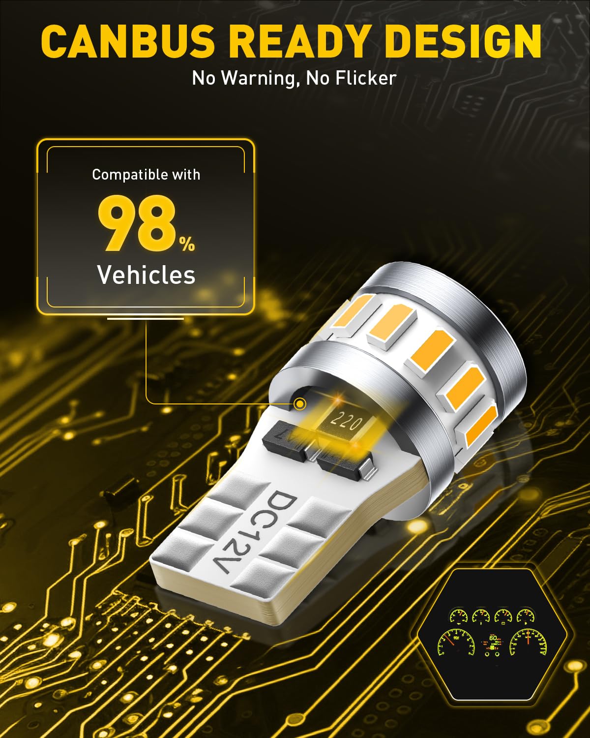 Canbus Ready Design: These 194 168 amber led bulbs use the latest built-in intelligent IC driver, compatible with 98% vehicles, preventing from error warning, odd flickering, and radio interference. However, the error free capability may be limited to the some vehicles(especially European vehicles) when use them as exterior lights. If you found the bulbs don't work, flicker, error warning on dashboard, or other issue, you can contact us through Amazon Buyer Message to get help and solutions