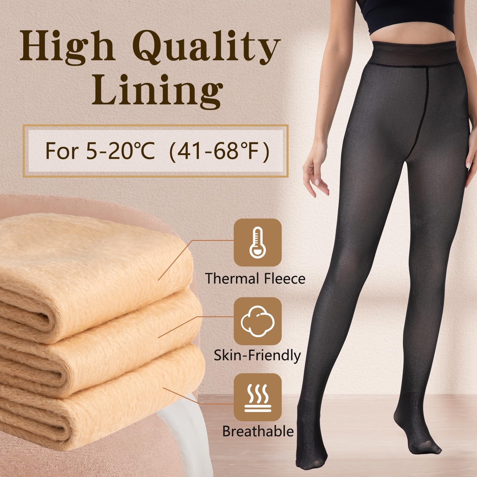 【Fake Translucent pantyhose】The warm tights for women have a black transparent layer on the outer layer and a soft and skin friendly fleece lining on the inner layer, giving a illusive translucency. The fleece lined sheer tights can easily match with any winter clothes, shape the perfect body curve while keeping warm, and is a must-have item in women's wardrobes