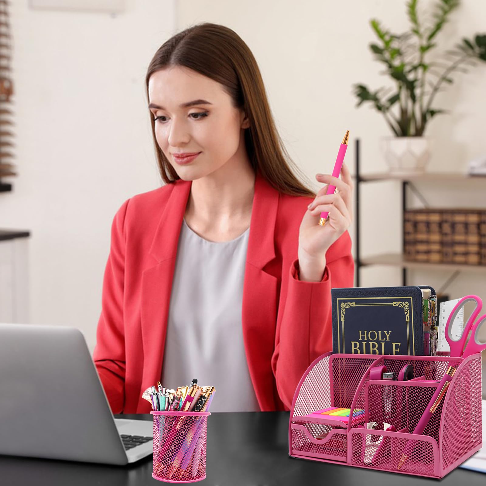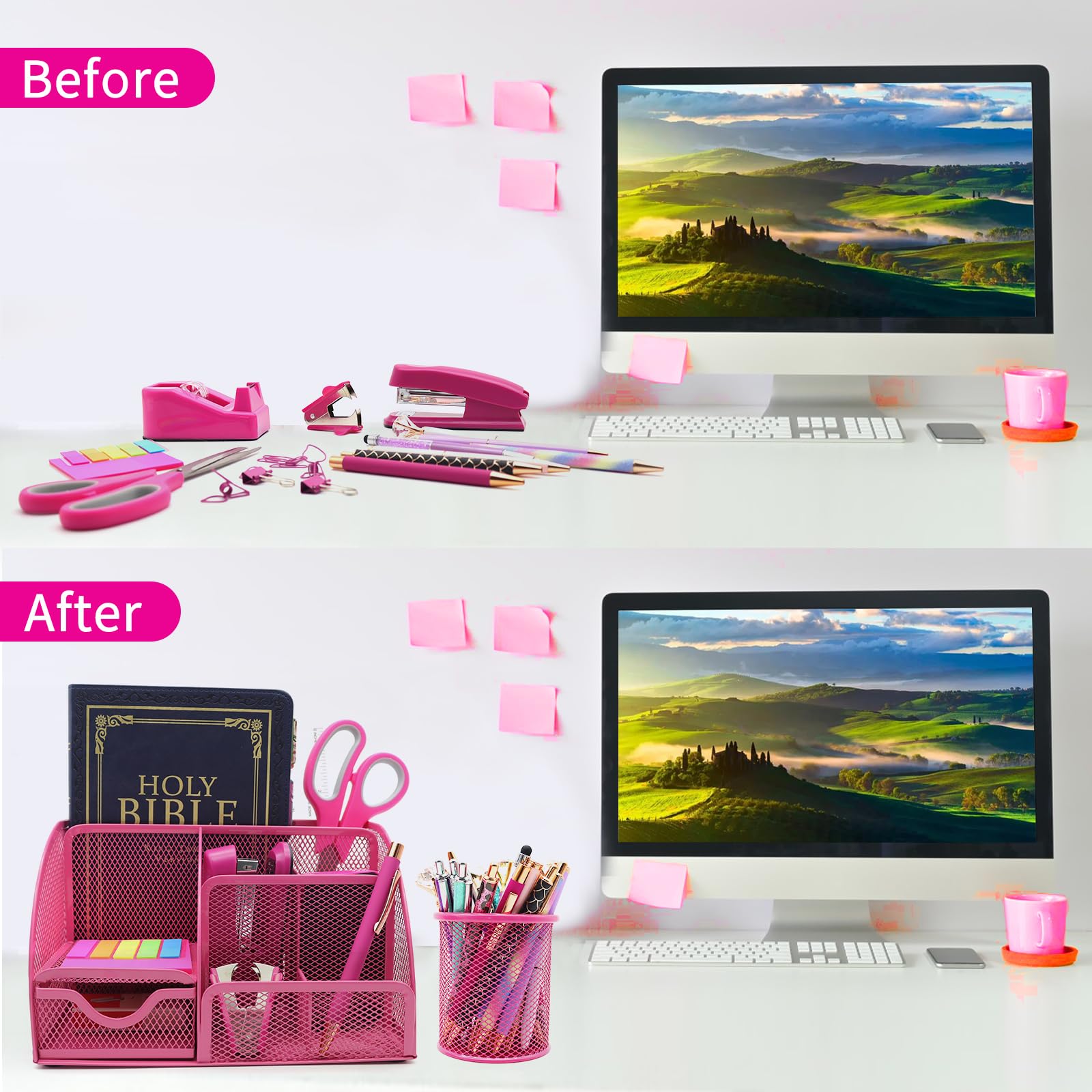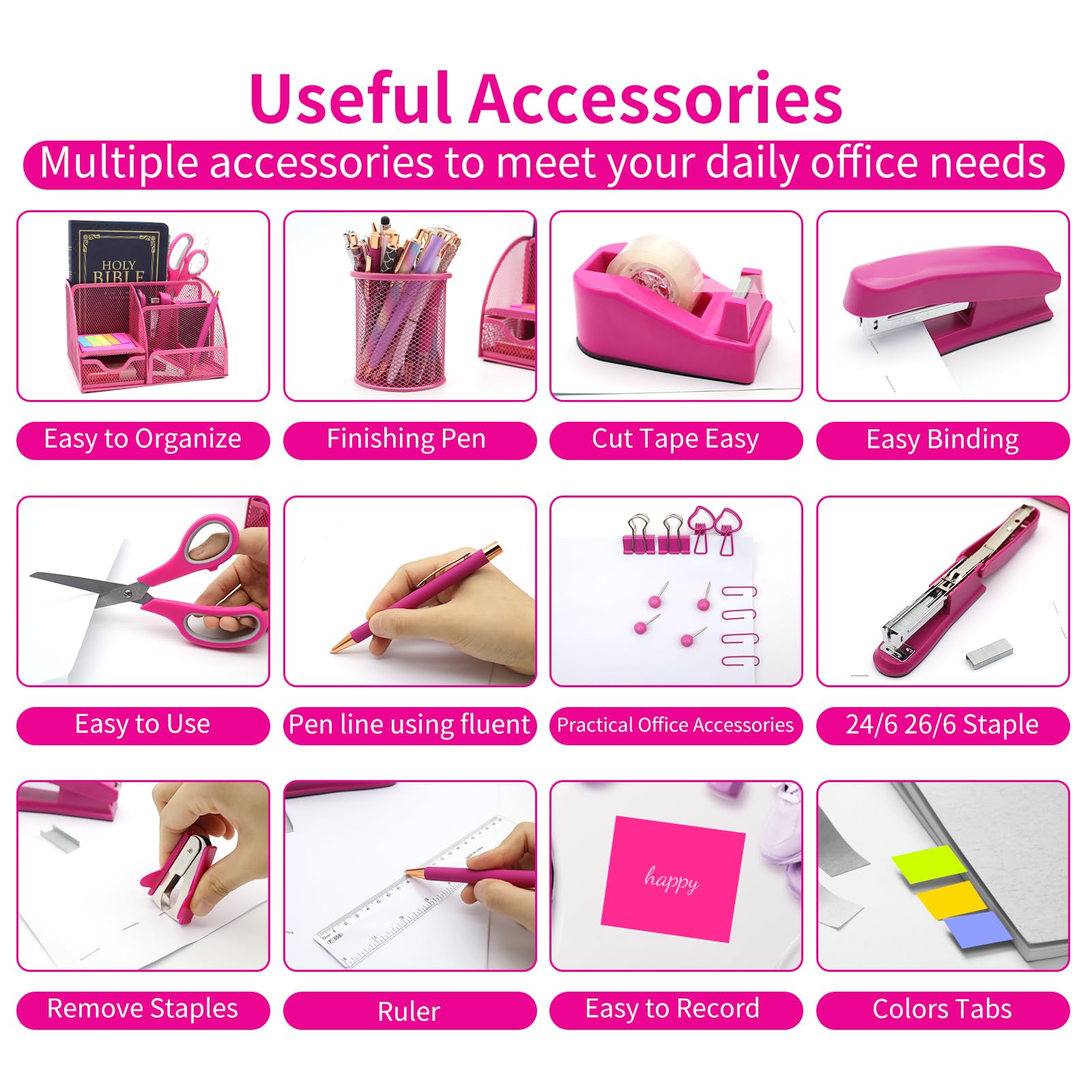 🏆Durability Champ🏆These Hot Pink desk organizers and accessories are built tough, ready to handle the daily office grind. They will withstand the toughest challenges, just like a superhero in a Hot Pink cape! No matter how many papers you staple, how much paper you cut or how many pieces of tape you use, this combo will stand up to the test of time.