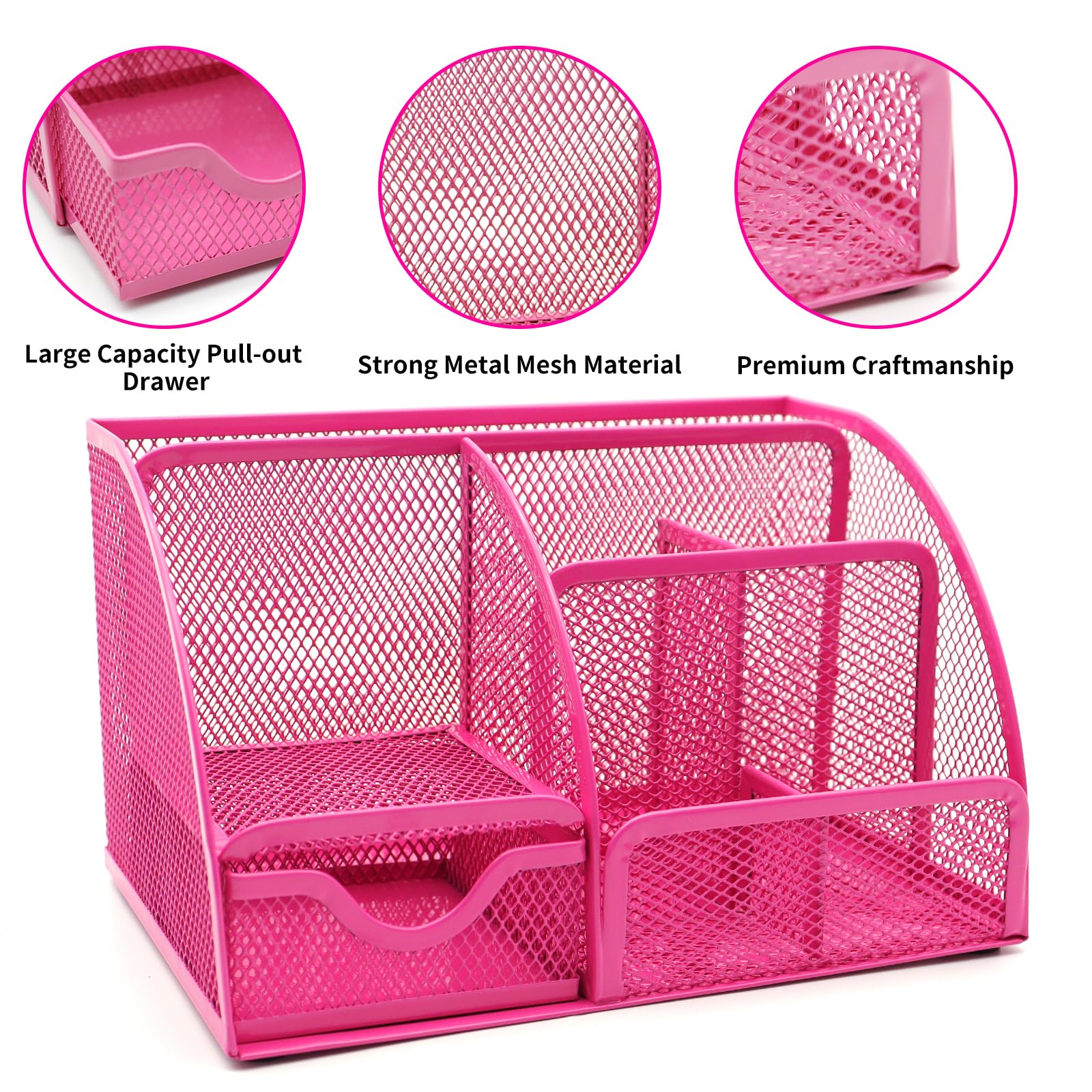 🌼All-round Utility🌼This Hot Pink office organization combo is like a multitasking superhero! It has everything you need to conquer the chaos of your workspace. From the drawer-equipped Hot Pink mesh desk organizer to the trusty stapler, it covers all the need. It's like having a personal assistant that keeps things in order while adding a touch of Hot Pink power!