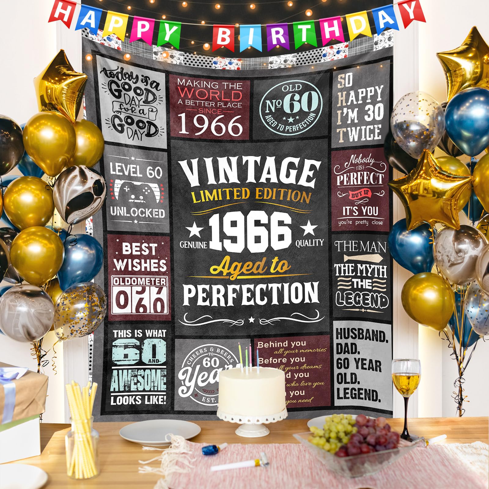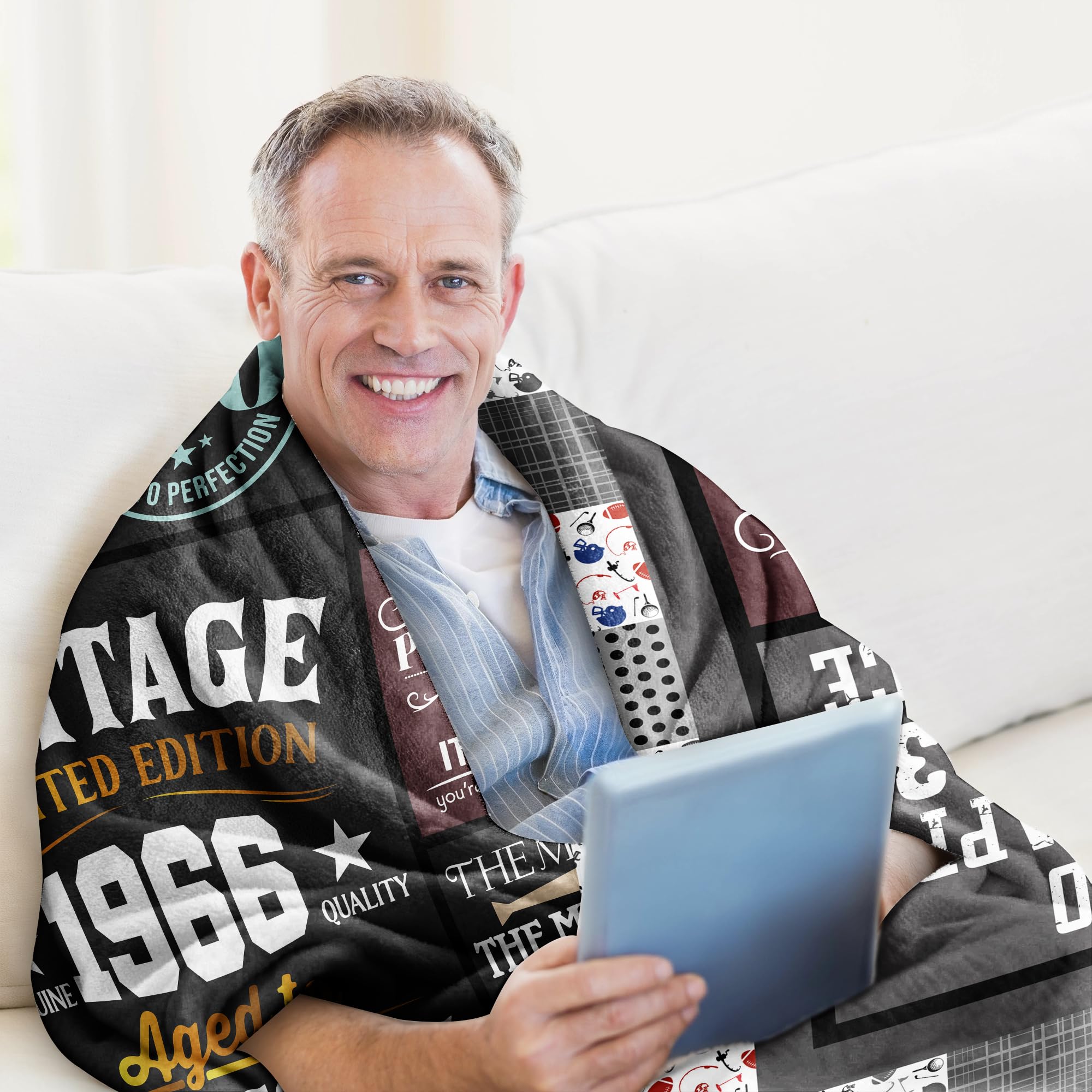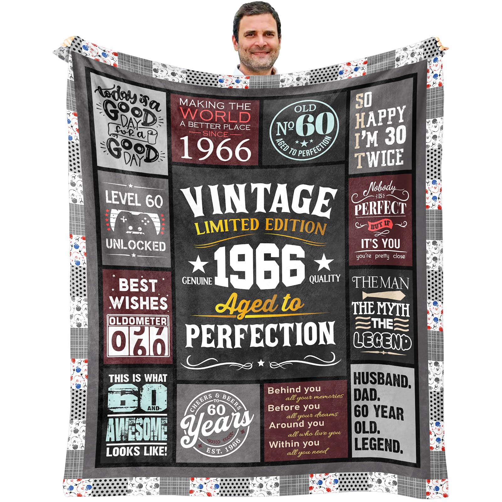 60th Birthday Gift for Men - Join in celebrating the exceptional 60-year-old man in your life. This milestone 60th birthday blanket features a unique, limited edition '1966' logo, symbolizing his birth year. It's a heartwarming surprise that honors his special journey and the memorable moments that define him.