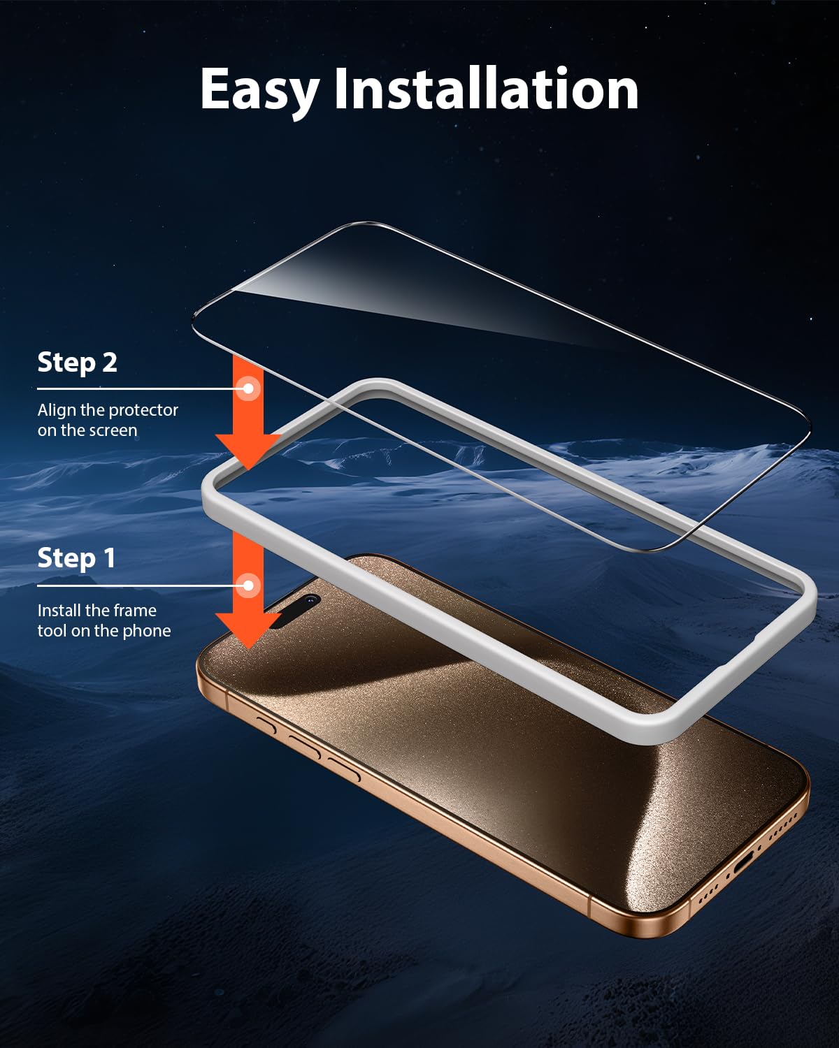【Easy Installation with Alignment frame】Simply align the frame with your phone screen, then put the screen protector on. No bubbles, no dust. Installation can be finished successfully in seconds