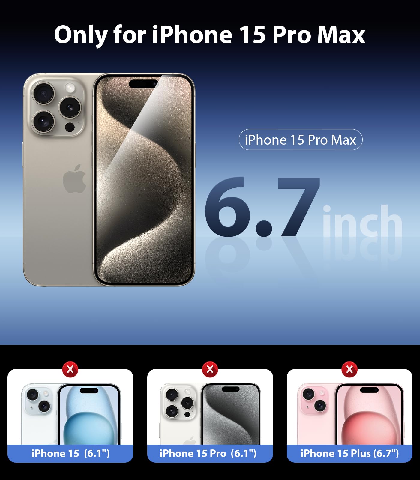 【Screen Protector for iPhone 15 Pro Max 6.7"】Compatible only with iPhone 15 Pro Max 6.7" screen